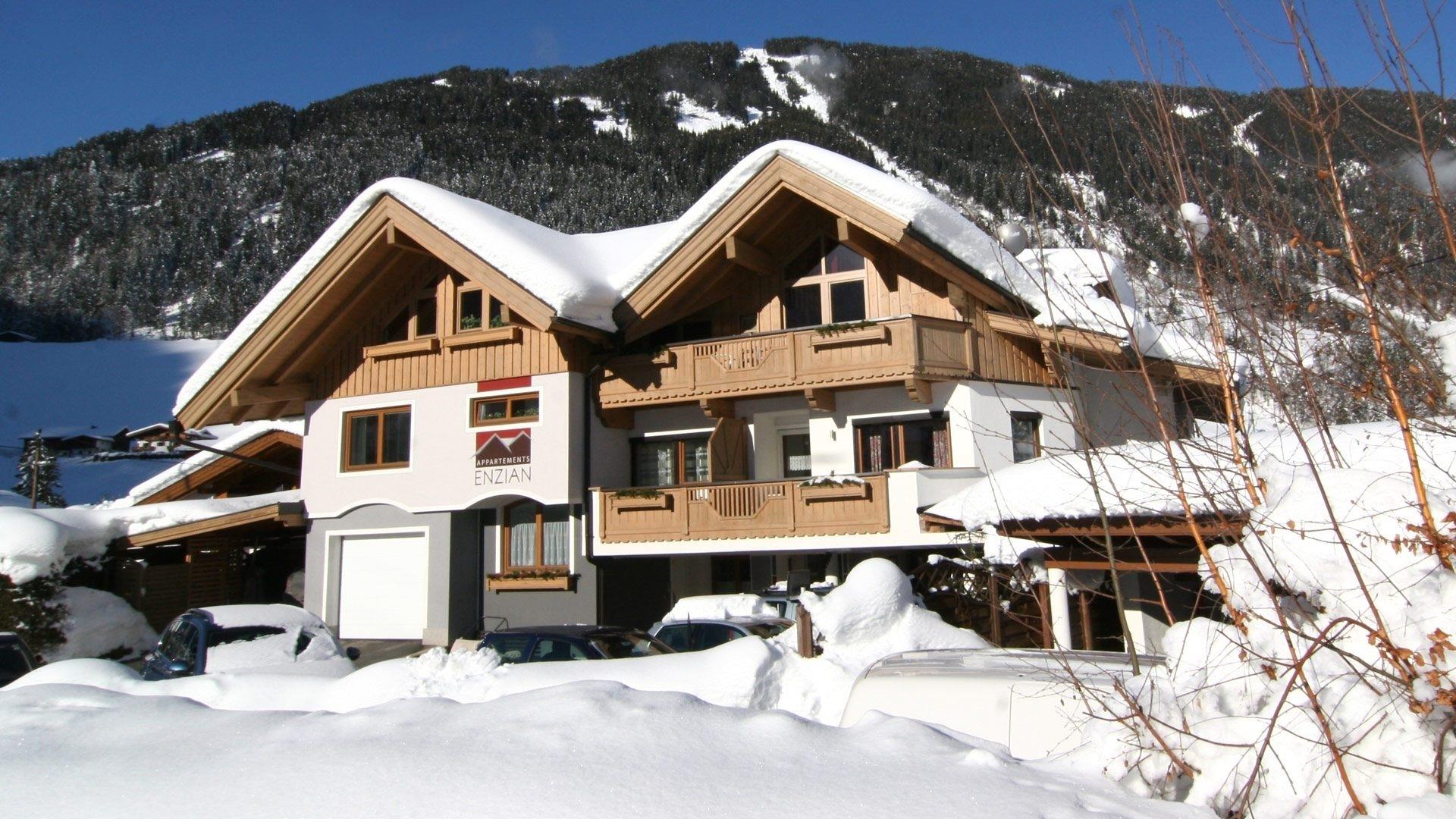 In stylischem Design erwartet Sie unser Haus Appartements Enzian in Finkenberg, am Sonnenplateau des Zillertals.