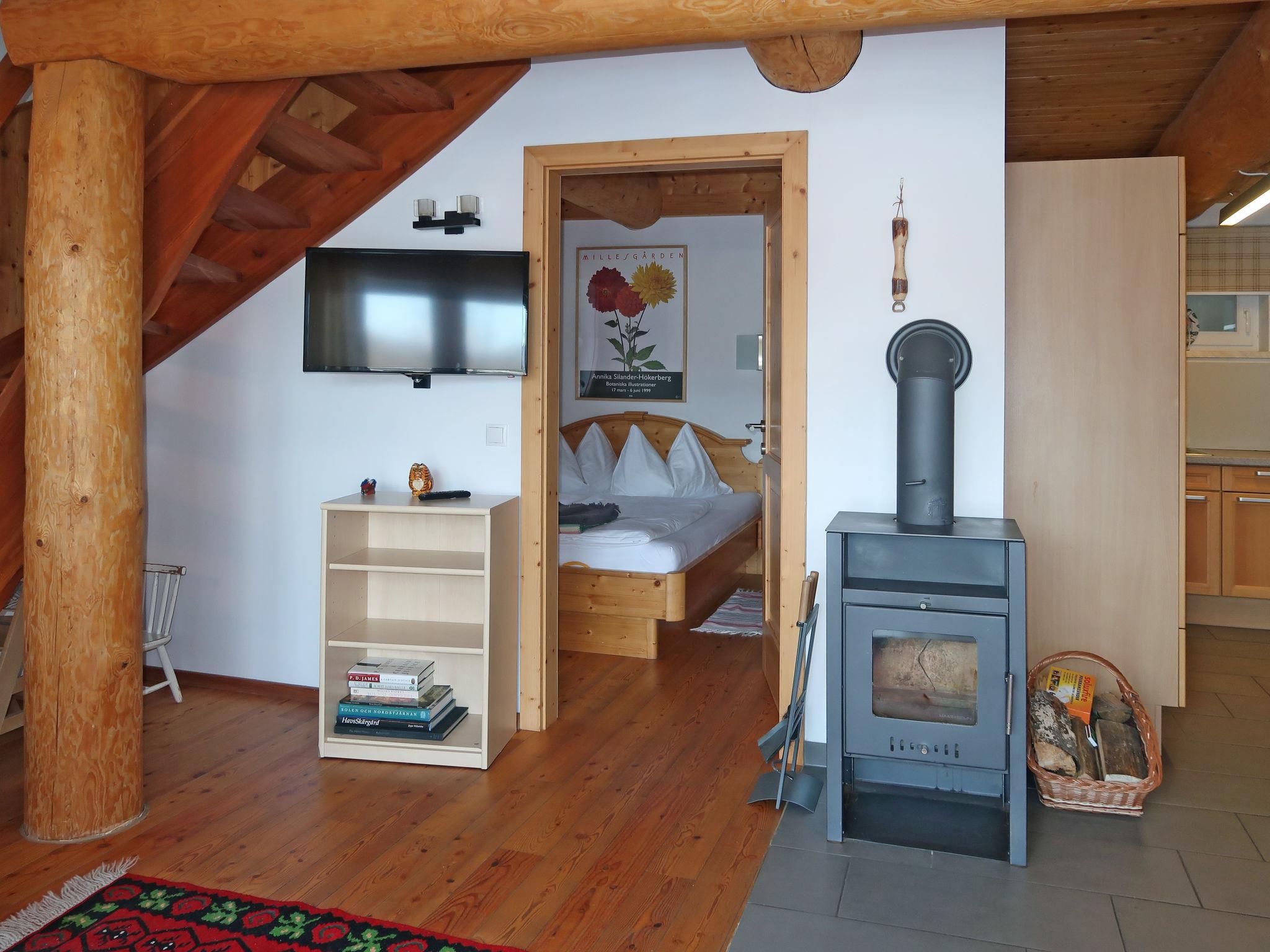 "Nikola", 4-room house 85 m2 on 2 levels. Tasteful and cosy furnishings: living room with Scandinavian wood stove, dining table and cable TV. Exit to the terrace. 1 double bedroom. Open kitchen (oven, dishwasher, 4 ceramic glass hob hotplates, toaster, kettle, microwave, electric coffee machine). Shower/WC. Upper floor: 1 double bedroom with sloping ceilings. 1 room with sloping ceilings with 1 x 2 bunk beds, 1 double bed. Exit to the balcony. Shower/WC, sep. WC. Heating. Wooden floors. Balcony, terrace. Terrace furniture, barbecue, deck chairs (2). Beautiful panoramic view. Facilities: washing machine, children's high chair, baby cot. Internet (WiFi, free). Please note: non-smoking house. 1 pet/ dog allowed. Pets are only allowed in summer! When there are less than the maximum number of guests staying at the property, not all of the housing units will be available for use. 50408-000297-2020