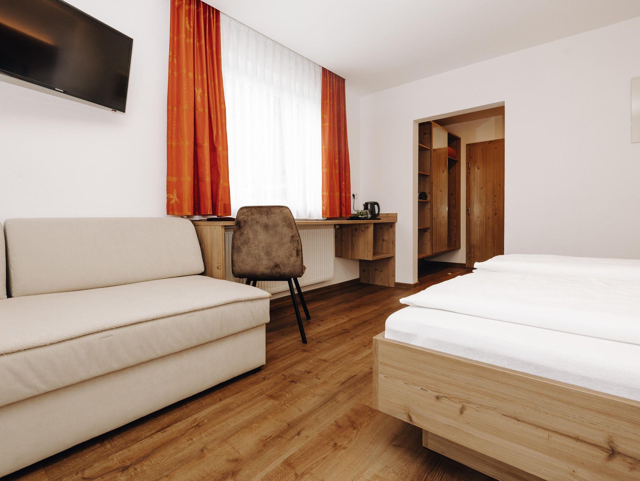 • 1 Wohn-Schlafraum (Kabel-TV, Radio, Telefon, gratis W-LAN, Mietsafe)