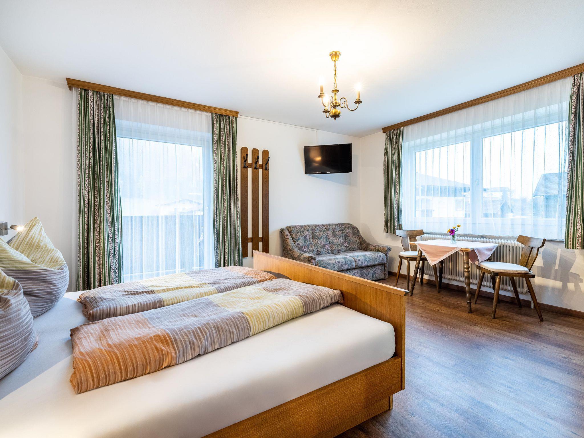 Unsere 4 geräumigen Doppelzimmer sind mit Dusche, Waschbecken, WC, Balkon mit Sitzgelegenheit, Flat TV, W-Lan und Sitzgruppe ausgestattet.