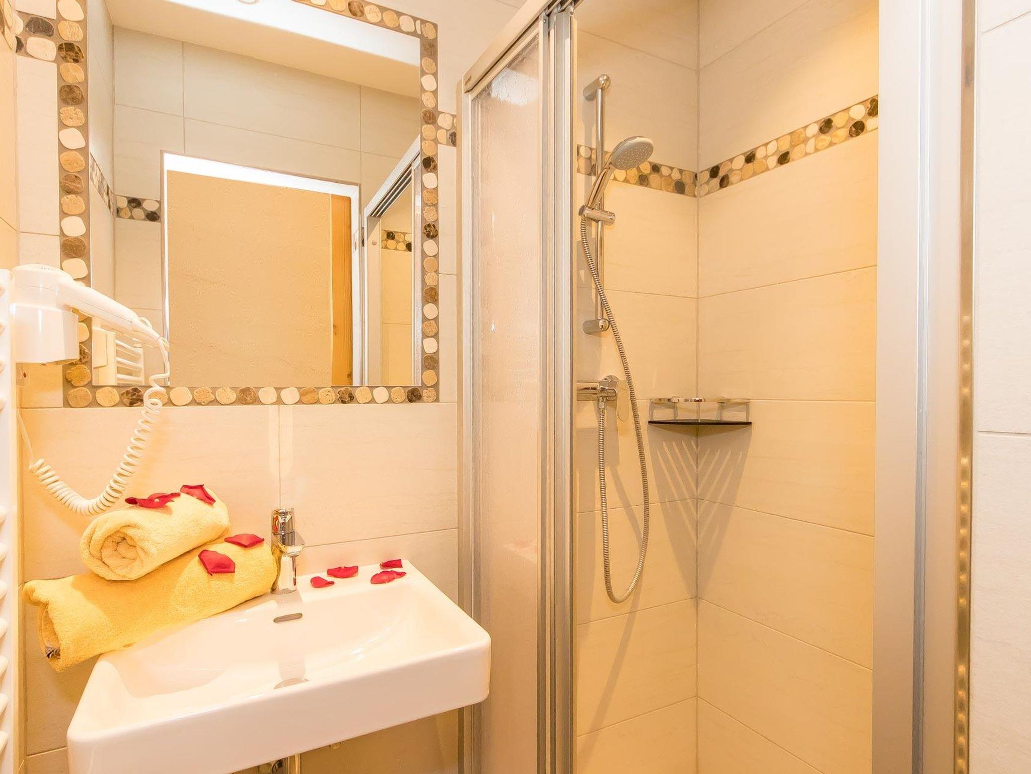 • Badezimmer mit Dusche, Handtuchwärmer und Föhn
