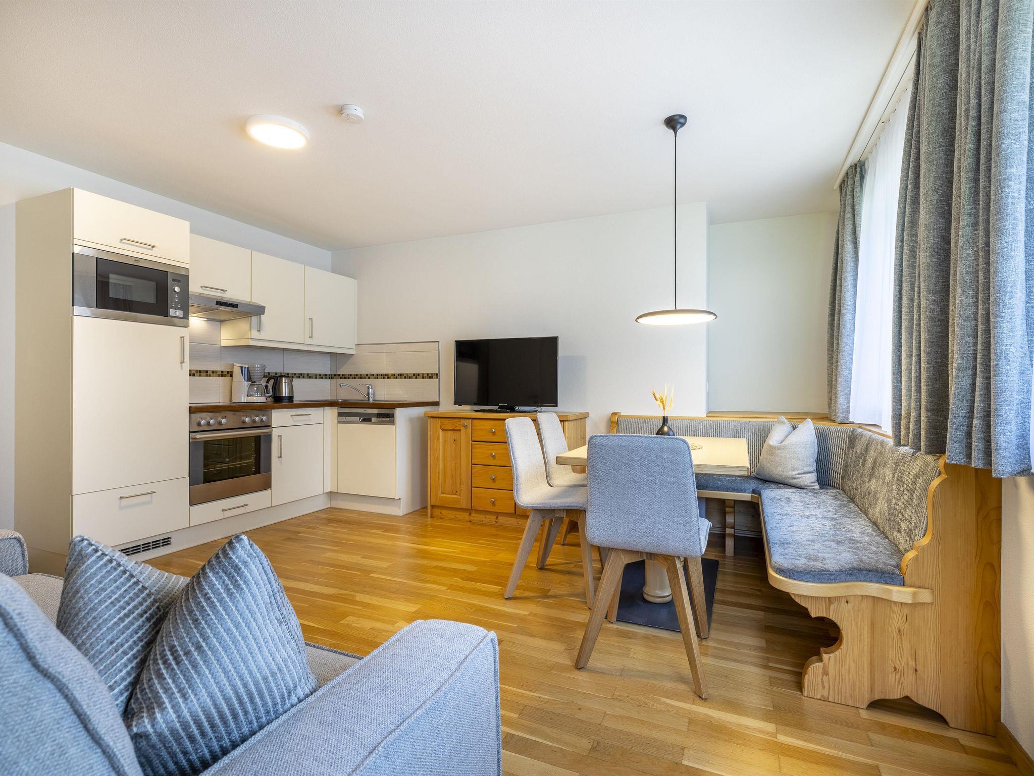 Das Typ C (ca. 65 m²) ist ein dreiräumiges Appartement und eignet sich für bis zu fünf Personen (mit Balkon und Blick auf die Skipisten Flachaus). Es verfügt über zwei separate Schlafzimmer, zwei Badezimmer mit Dusche und WC, einer separaten Wohnküche (mit Geschirrspüler und Backofen) mit Sitzecke und gemütlicher Couch. Darüber hinaus wird Ihnen ein kostenloser Zugang zu WiFi, ein Zimmersafe sowie Kabel TV geboten.