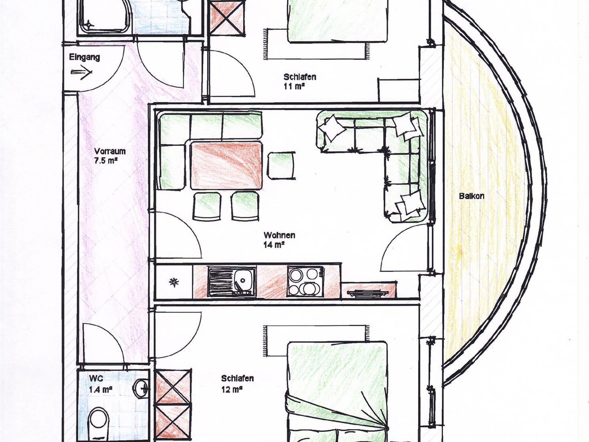 Alpenappartements Fritzenwallner, Fewo B (2-4 Personen/2 SZ, 1 WSR)