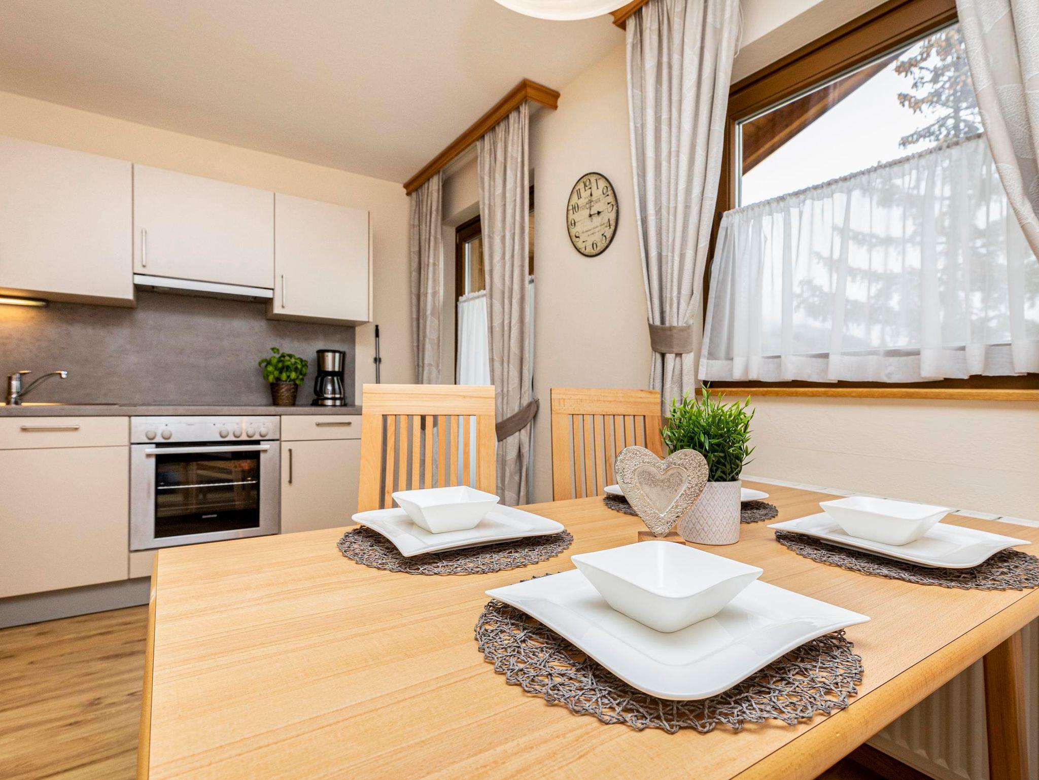 Die ruhige Lage am Ortsrand gewährleistet Ihnen erholsame Nächte und entspannte Tage im Freien. Hier, inmitten sanfter Wiesen, können Sie die Seele baumeln lassen und frische Bergluft tanken. Das Appartement Bergpanorama ist familienfreundlich gestaltet, mit Gartenmöbeln, die Ihnen die Möglichkeit bieten, im Freien die Aussicht zu genießen.