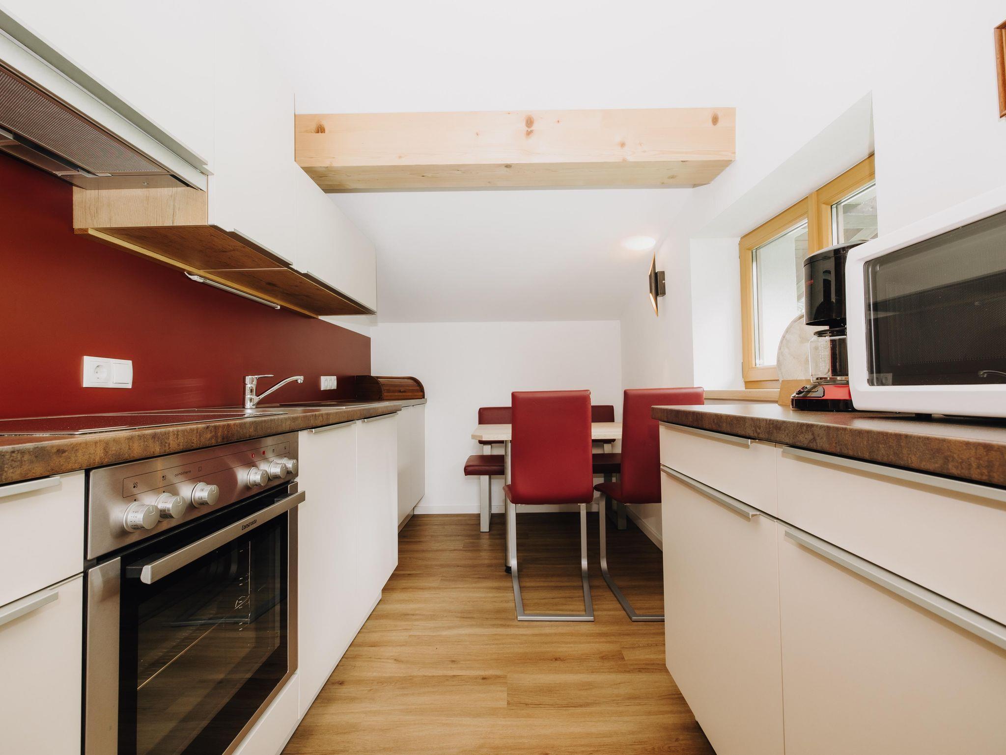 • Wohnküche komplett ausgestattet inkl. Mikrowellenherd und Backrohr