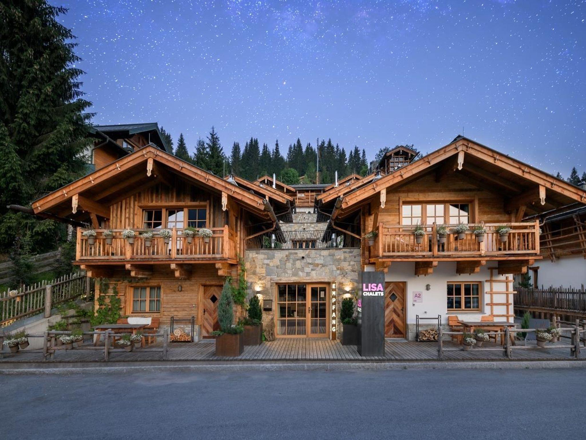 Die hochklassigen und zugleich urigen 8 Lisa-Chalets befinden sich direkt im Herzen von Flachau. Diverse Geschäfte, hervorragende Restaurants etc. befinden sich in Geh-Nähe. Die 8 Nichtraucher-Chalets für 4 bis maximal 8 Personen bieten genügend Platz in jeweils 2-3 Schlafzimmern und je 2-3 Bädern. Die Chalets verfüggen über einen großzügigen Wohnraum mit Kamin, moderner Küche, Essecke, Sofa und eigenem Spa-Bereich mit Sauna. Die Chalets besitzen jeweils Balkon und Terrasse. Auf Wunsch werden am Morgen Brötchen oder eine Frühstücksplatte gegen Gebühr serviert. Ein Tiefgaragenplatz pro Chalet ist im Preis inklusive. Mitte Juni bis Anfang September erhalten Gäste ein Inklusiv-Programm mit täglichen Wanderungen, Berg-& Talfahrt, Fußball, BodyFit uvm.