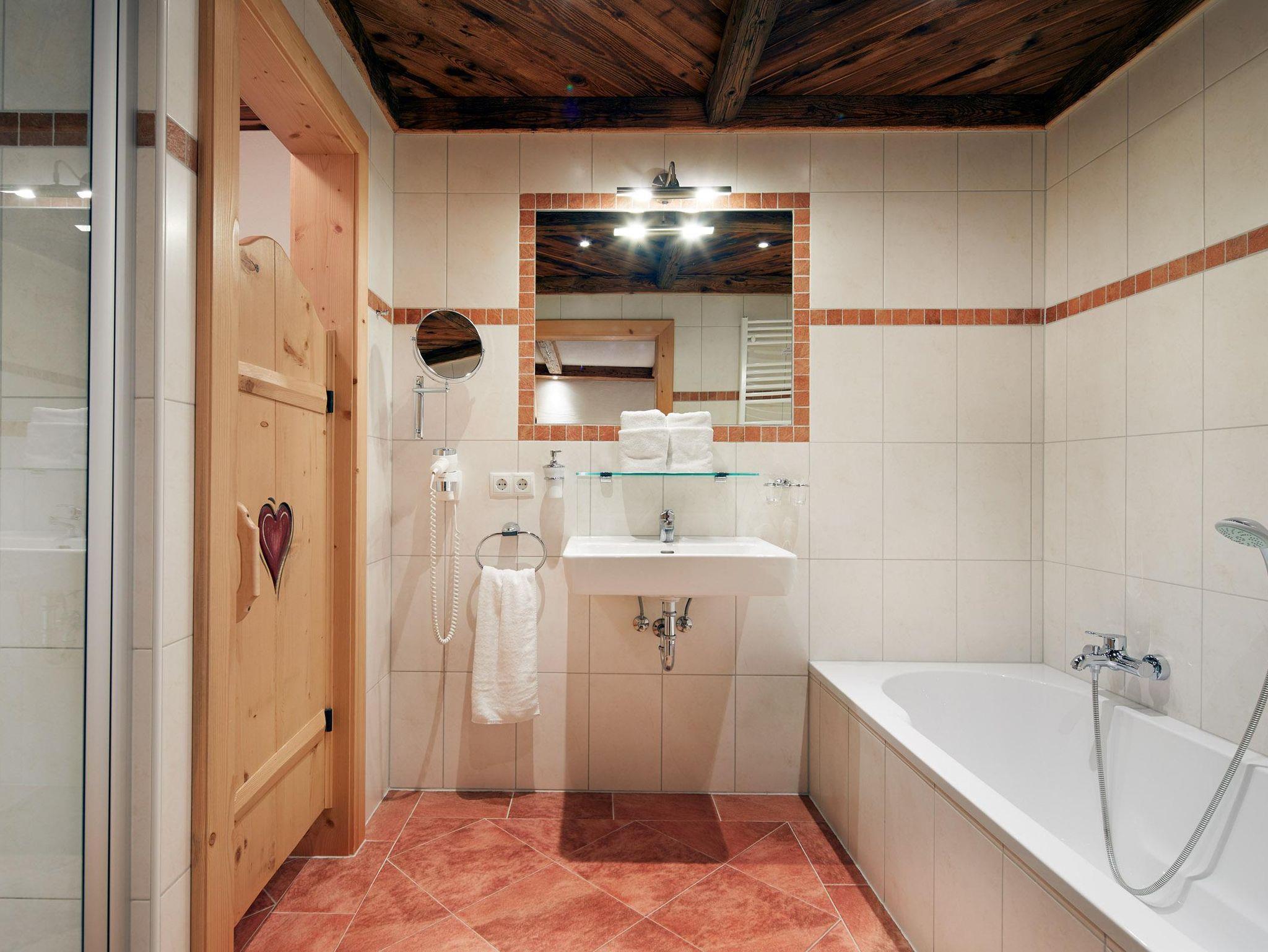 • 1 Doppelzimmer mit Kabel-TV, Safe, Badezimmer mit Dusche und Badewanne/Fön/Kosmetikspiegel/WC (getrennt)