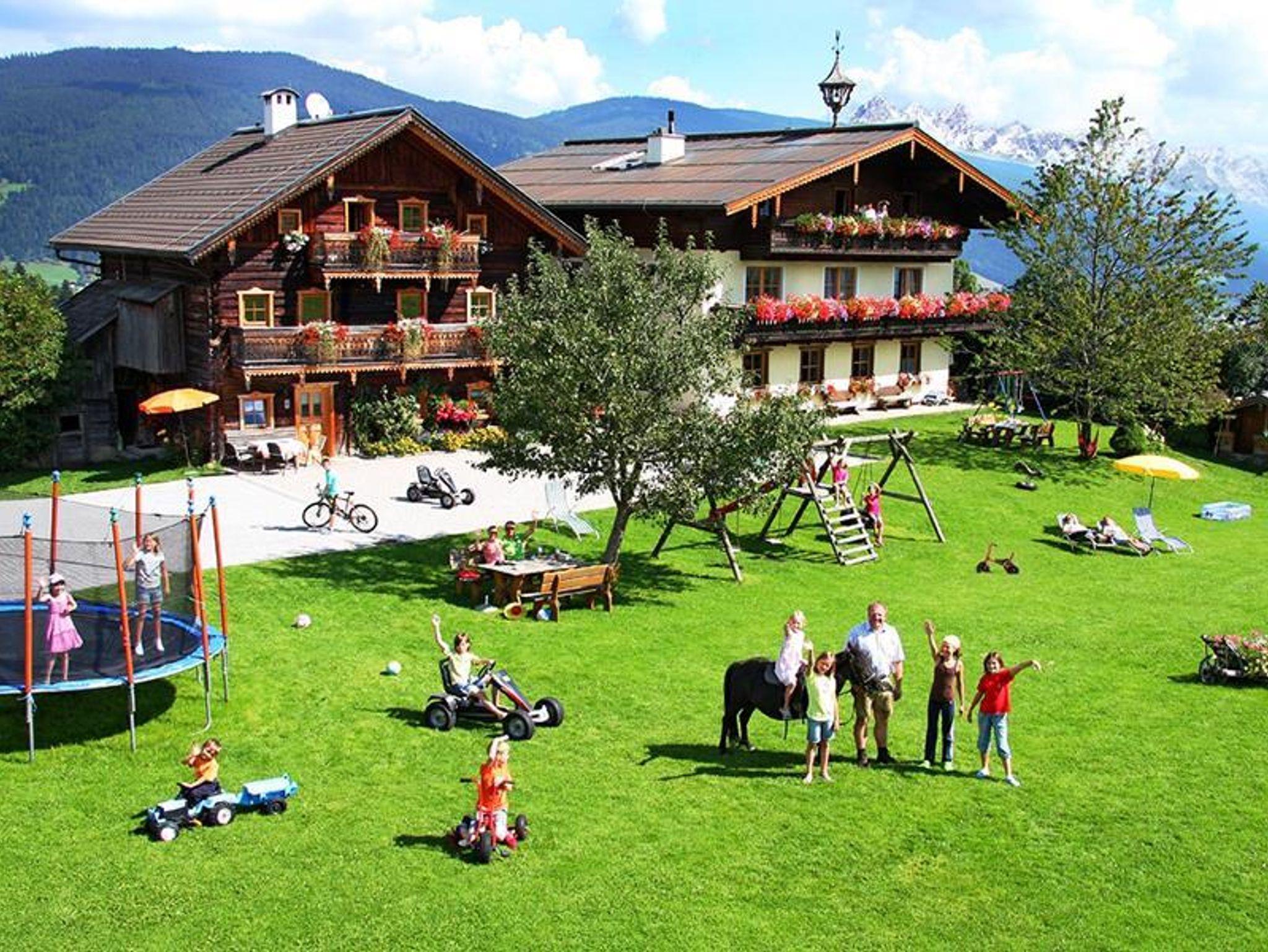 Unser biologisch bewirtschafteter Hof liegt auf einem sanften Bergplateau in ruhiger Einzellage umgeben von Bergen, Wiesen und Wäldern. Rund um den Hof bietet sich ein traumhafter Blick auf die Salzburger Berge. Hier können Sie in Ruhe die Natur genießen und einen traditionellen Bauernhof erleben und wer will darf auch selbst mithelfen. Während sich die Eltern in der Sonne baden, können sich Ihre Kinder mit Trampolin, GoKarts, Fahrräder, Fußball, Tischtennis, Heuspringen, Sandkiste und Spielzeug austoben- Perfekt für einen Urlaub mit der ganzen Familie! Komplett eingerichtete Appartements mit Infrarot Wärmesauna in jeder Wohnung. Urige Almhütte am Hof zur freien Benützung, mit offenem Feuer, Lagerfeuer und Griller für gemütliche Abende. Gratis W-LAN! WEBCAM am Hof! (http://webcam.ederbauer.at)