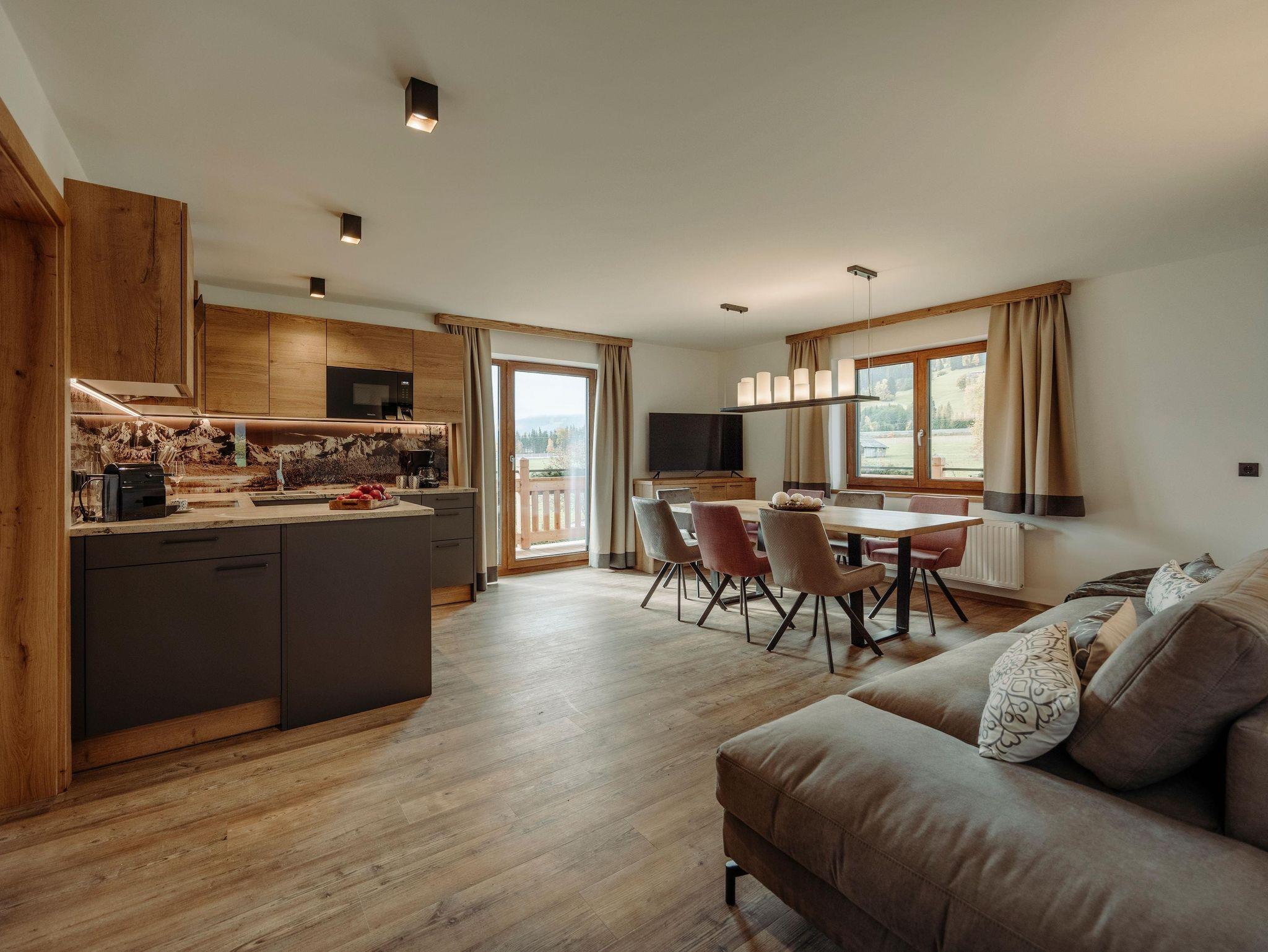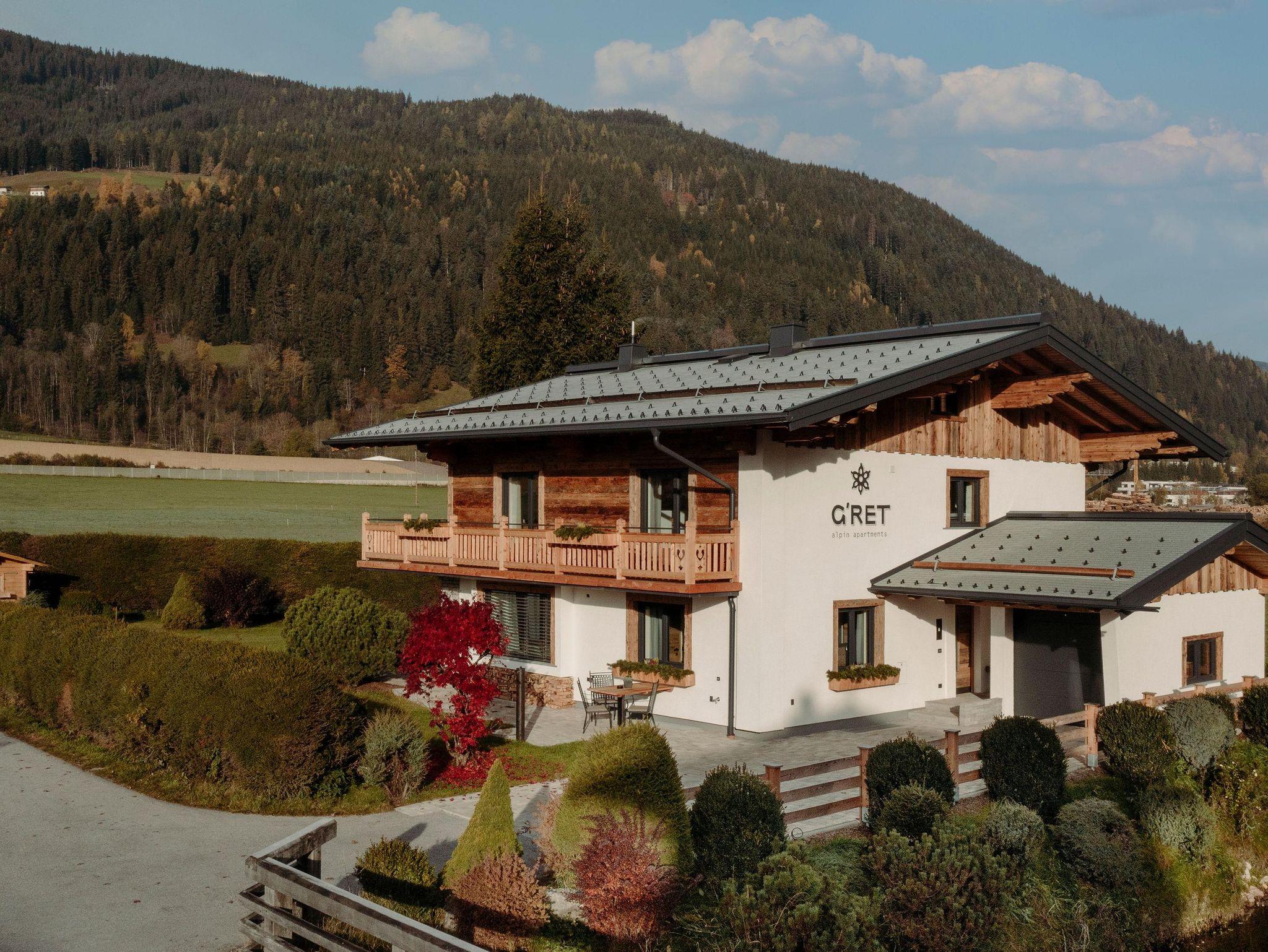 Am Ortsrand von Flachau-Reitdorf liegt das neu erbaute Appartementhaus G'ret. Die idyllische Lage inmitten der Salzburger Bergwelt, nur 200 m vom Familienskigebiet Monte Popolo entfernt und mit den Langlaufloipen direkt vor dem Haus verspricht einen erholsamen und autofreien Winterurlaub in Ski amadé.