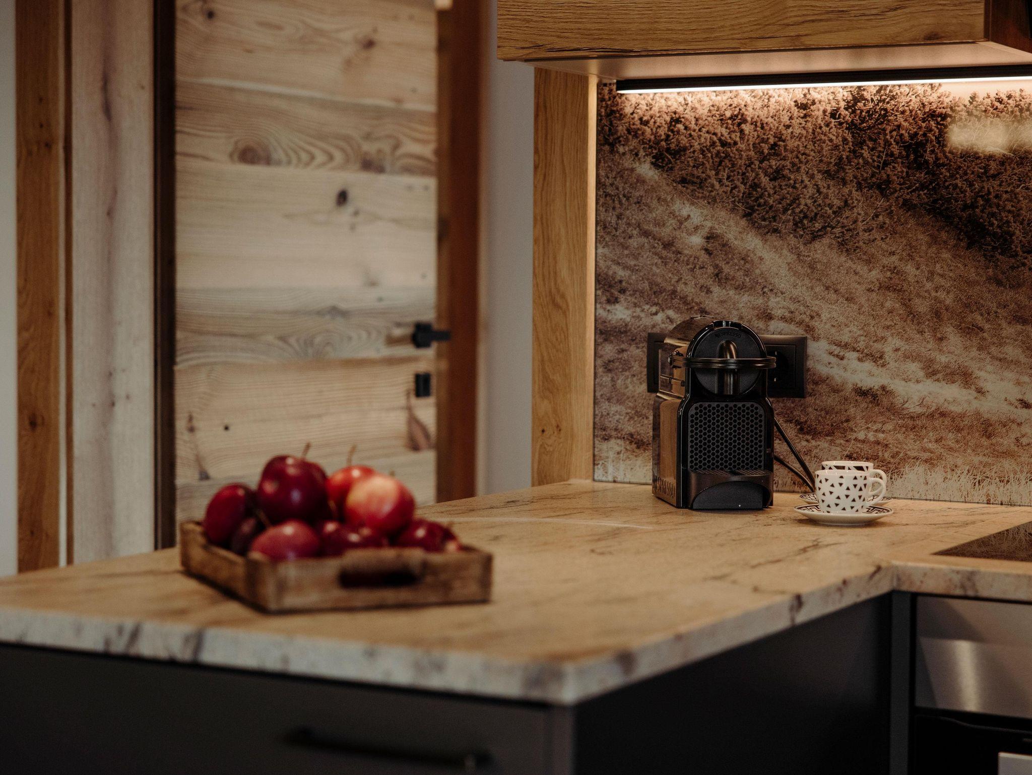 • Moderne Küche mit Induktions-Kochfeld, Spülmaschine, Kühl- und Gefrierschrank, Kaffeemaschine, Toaster, Wasserkocher u.v.m.