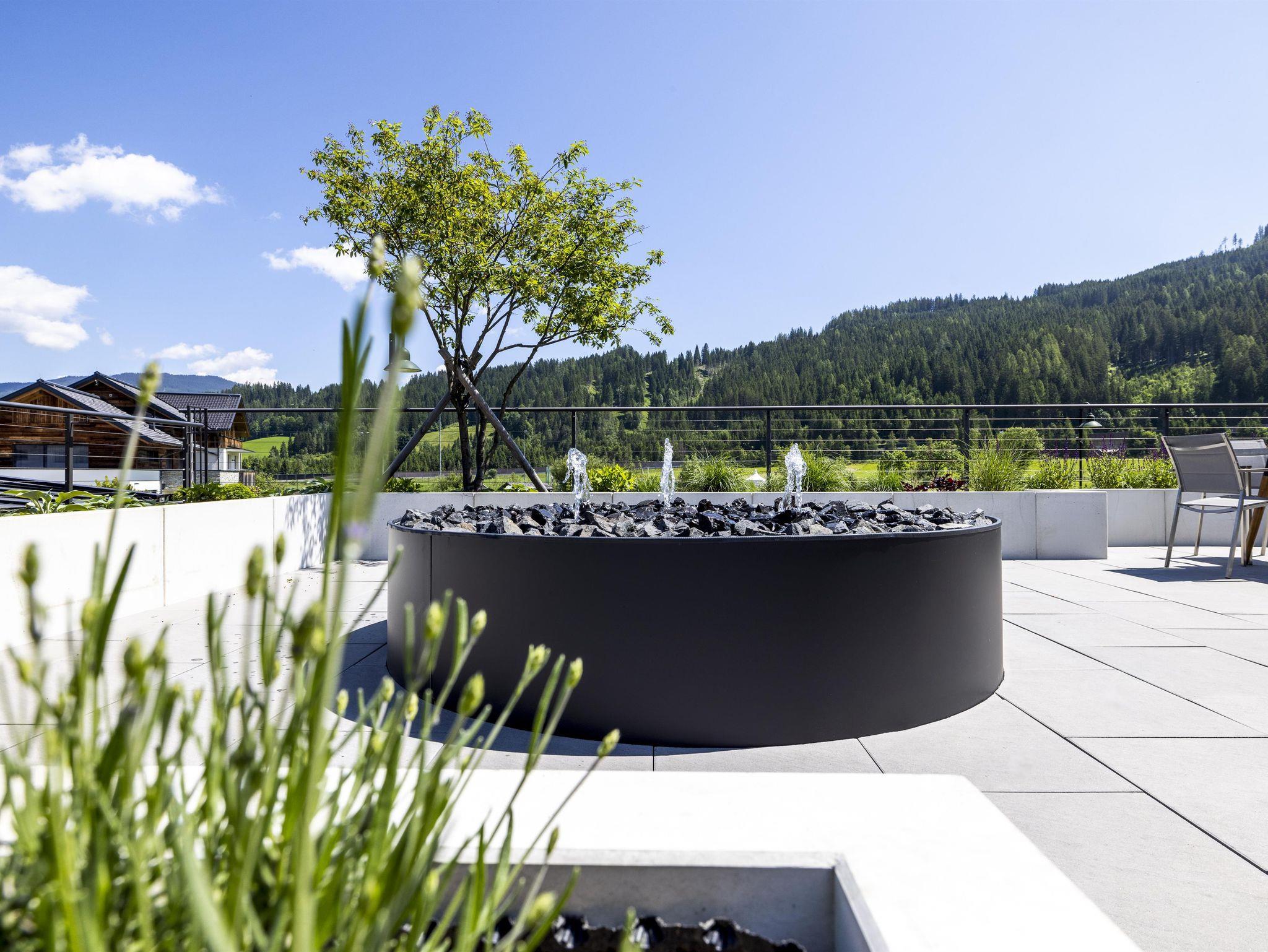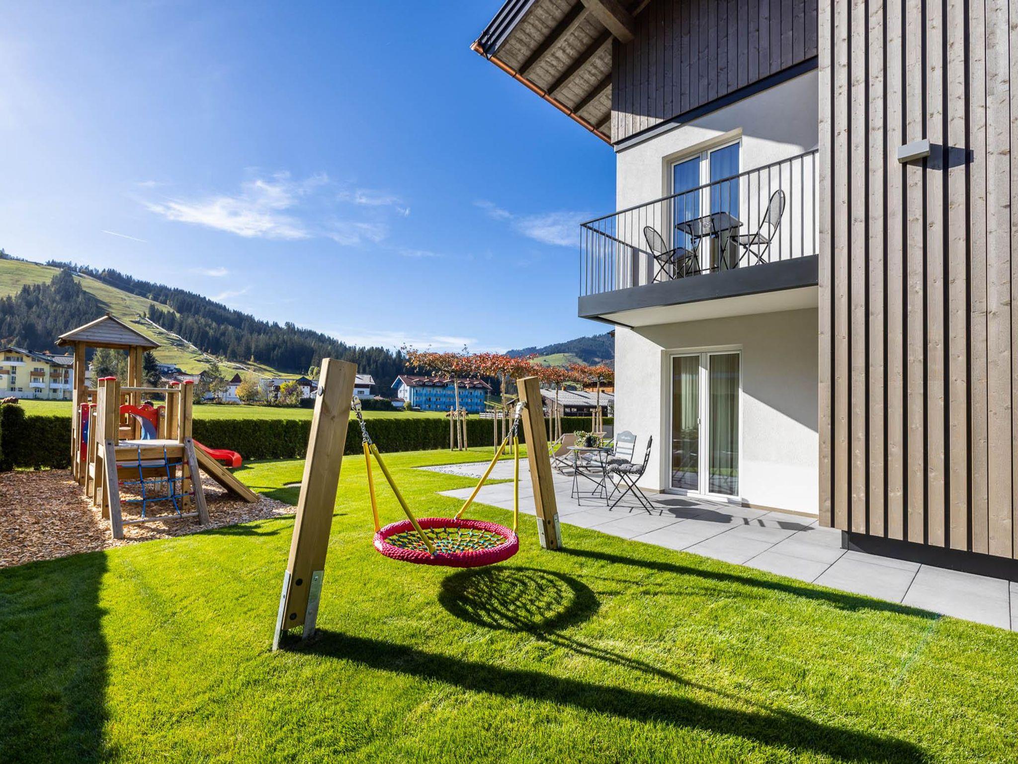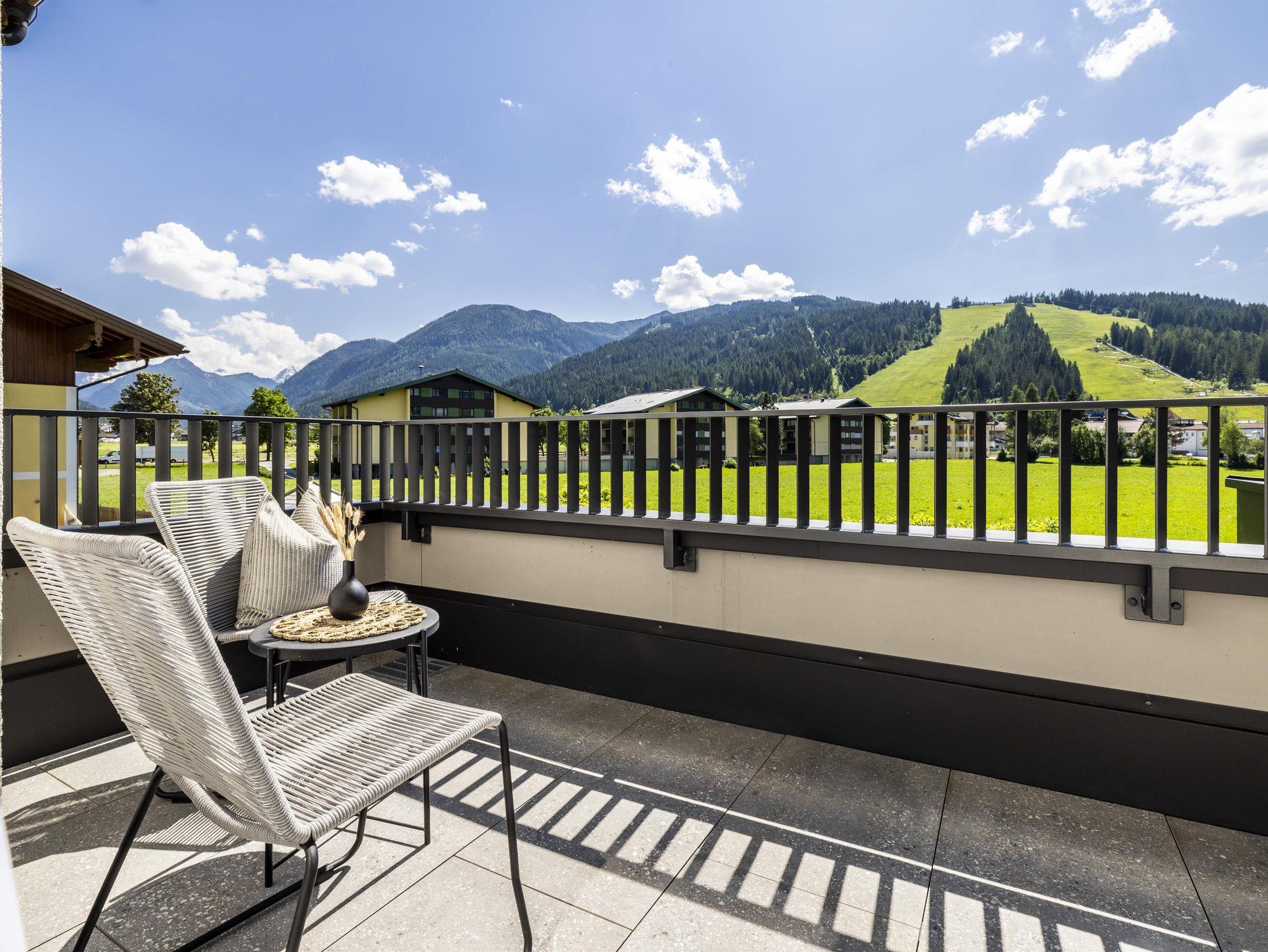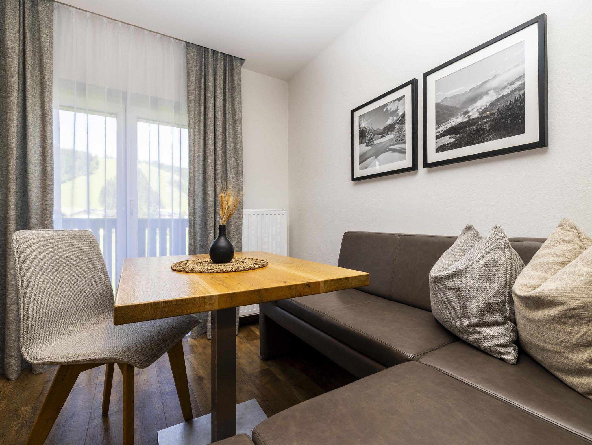 Das Typ A Superior (ca. 30 m²) ist ein zweiräumiges Appartement und eignet sich für zwei Erwachsene oder eine Familie mit einem Kind (Blick auf die Skipisten von Flachau, entweder mit Gartenterrasse oder teilweise Balkon). Es verfügt über ein Doppelbett, ein Extrabett, einen separaten Wohnbereich mit Küchenzeile und Sitzgarnitur, ein Badezimmer mit Dusche und WC, kostenlosen Zugang zu WiFi, einen Zimmersafe sowie Kabel-TV.