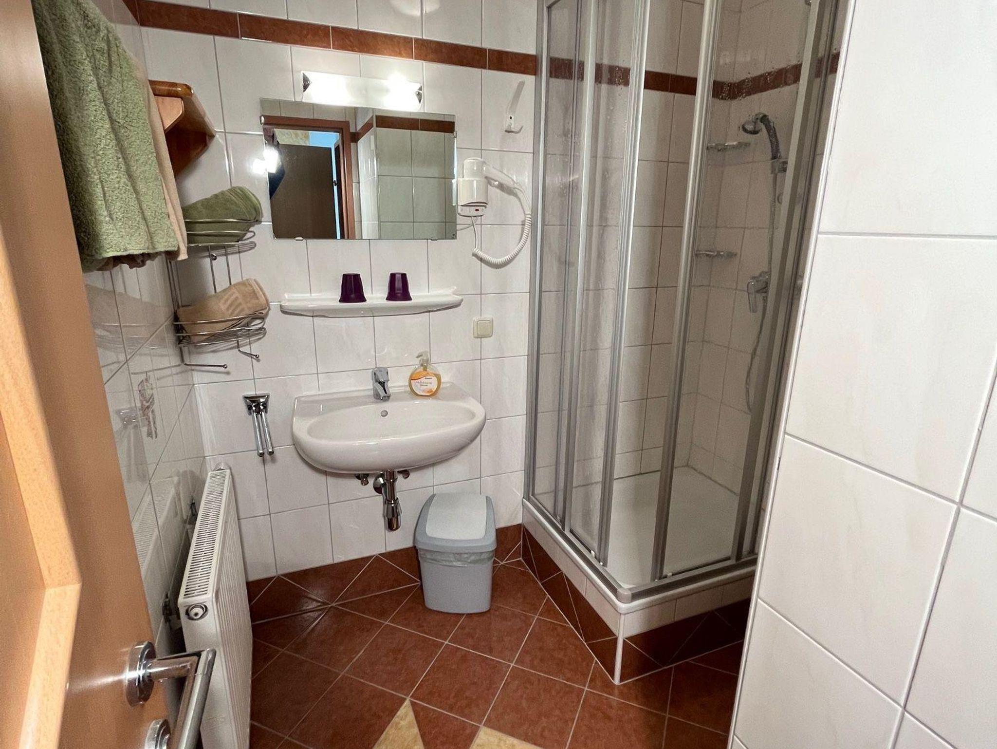 Dieses Appartement für 2 bis 5 Personen besteht aus: Vorraum mit Garderobe, gemütlicher Wohnraum mit bequemer Couch (Schlafgelegenheit), gepolsterte Eckbank, Küchenzeile komplett mit E-Herd, Backofen, Toaster, Kaffeemaschine, Wasserkocher, Geschirrspüler und Kühlschrank, Full HD LED TV Gerät, gratis WLAN, 2 Schlafzimmer, 2 Bäder (davon 1 Dusche und WC getrennt), Süd- und Ostbalkon mit Stiege in den Garten.