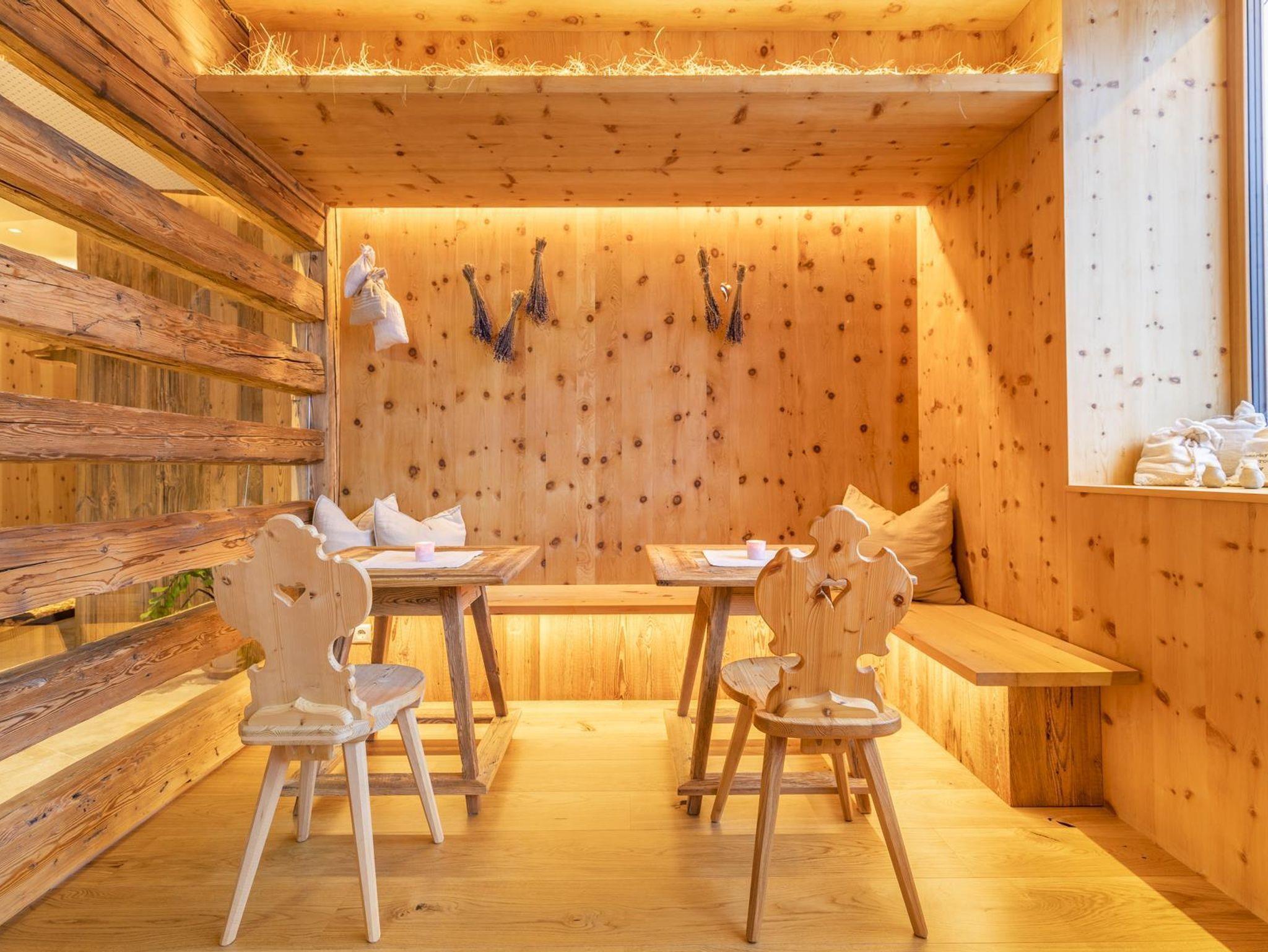 Luxus für 2 bis 6 Personen moderner und „comfortabler“ Ausstattung mit Naturmaterialien, überdachte Terrasse, eigene PanoramaSAUNA, extra WC im Wohnbereich, 1 großzügiges Schlafzimmer mit vollwertigem Stockbett (teilweise durch Schiebetür trennbar), großes Bad (Dusche und WC), TV im Wohn-, Schlafraum und Kindernest, große, vollausgestattete Küche, Geschirrspüler, Mikrowelle, 4er Cerankochfeld, Backrohr, Kaffeetabs-Maschine und klassische Kaffeemaschine, Wasserkocher, Geschirr und Besteck