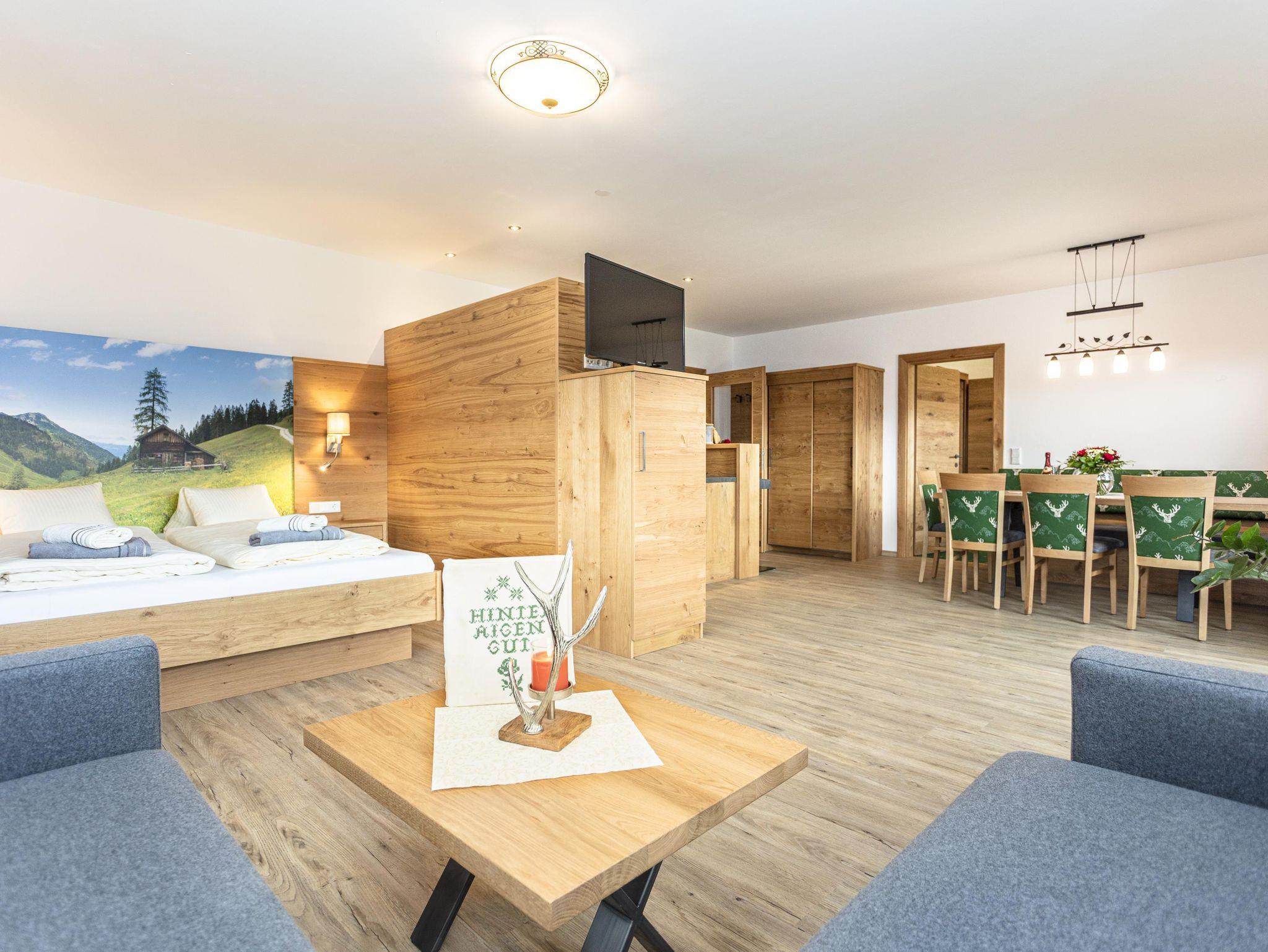 Das Hinteraigengut liegt ruhig und sonnig im Ortsteil Reitdorf. Skibushaltestelle, Loipe und Wanderwege sind in der Nähe. Das Haus bietet Sauna, Dampfbad, Fitnessraum und eine Parkgarage. Die Zimmer werden mit einem hervorragenden Frühstücksbuffet angeboten. Die bestens ausgestatteten Appartements sind auch mit Frühstück buchbar. Sie können auch gerne am Abend in der Bauernstube nach Karte essen und den Abend gemütlich ausklingen lassen.