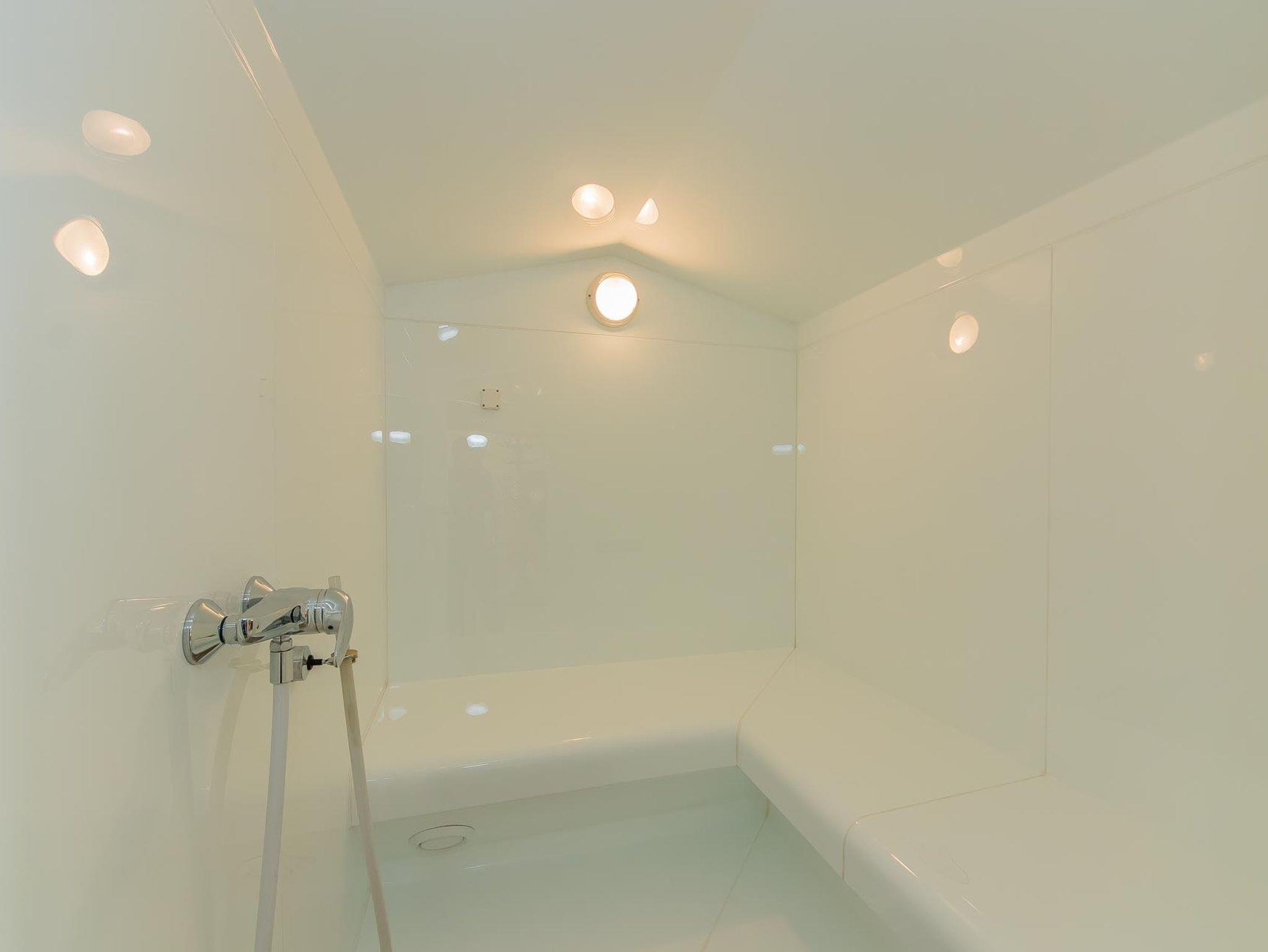 • eine große Wohnküche mit einer ausziehbaren Couch für 2 Personen und ein Doppelbett,