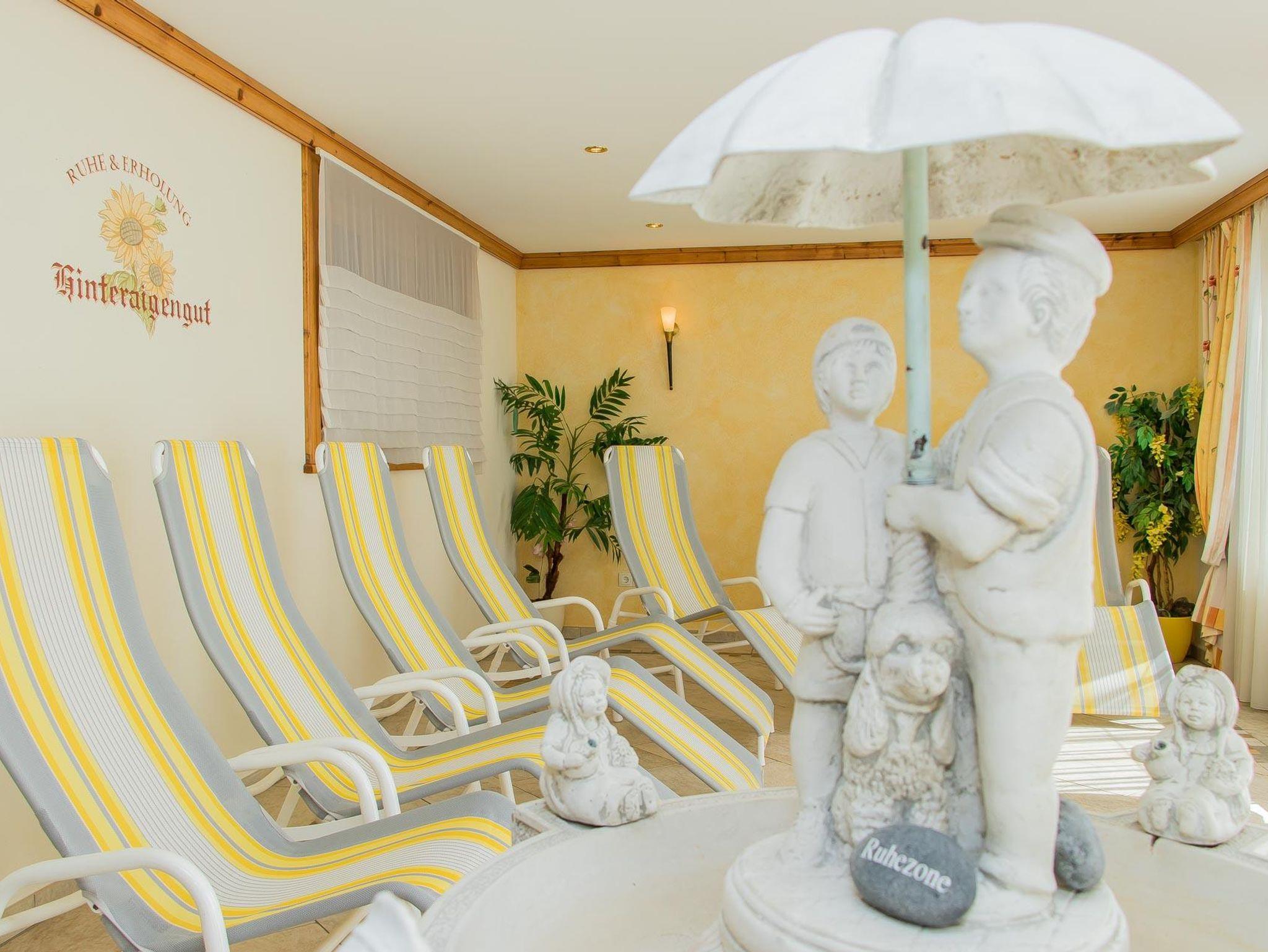 Das Hinteraigengut liegt ruhig und sonnig im Ortsteil Reitdorf. Badesee, Rad- und Wanderwege sind in der Nähe. Das Haus bietet Sauna, Dampfbad, Fitnessraum und eine Parkgarage. Im Sommer gibt es einen großen Kinderspielplatz, Streicheltiere .Die Zimmer werden mit einem hervorragenden Frühstücksbuffet angeboten. Die bestens ausgestatteten Appartements sind auch mit Frühstück buchbar. Sie können auch gerne am Abend in der Bauernstube nach Karte essen und den Abend gemütlich ausklingen lassen.