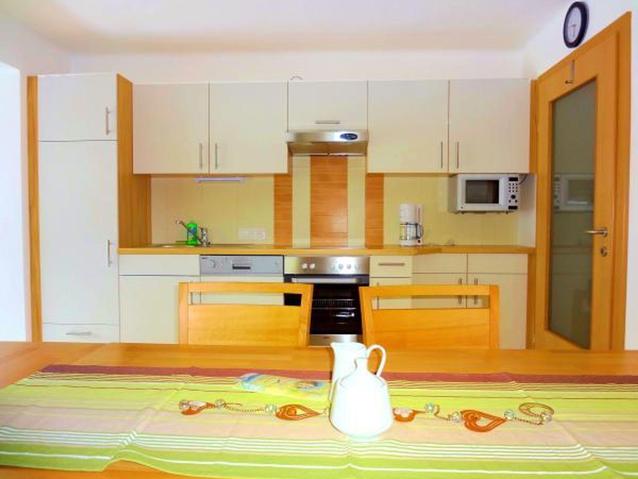 Das Appartement ist vollkommen ausgestattet mit Geschirrspüler, Elektroherd + Backrohr, Kühlschrank mit Gefrierfach, Kaffeemaschine, Wasserkocher, Toaster, Mikro, Geschirr, Gläser und Besteck, Bettwäsche sowie Hand- und Badetücher werden kostenlos zur Verfügung gestellt, Hochstuhl und Gitterbett vorhanden.