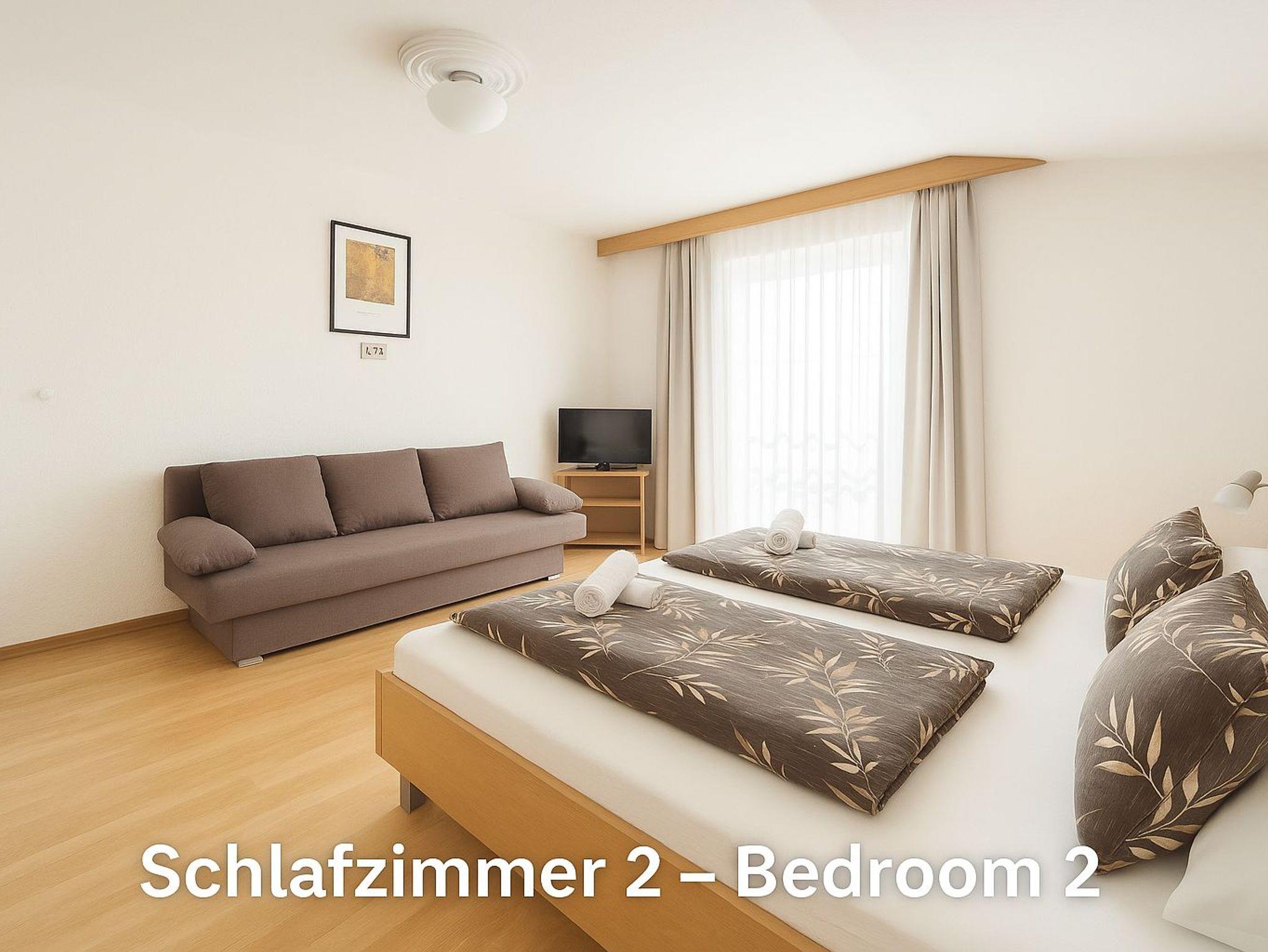 Schlafzimmer 2: ein Doppelbett 160 x 200 cm, ein Einzelbett 90 x 200 cm