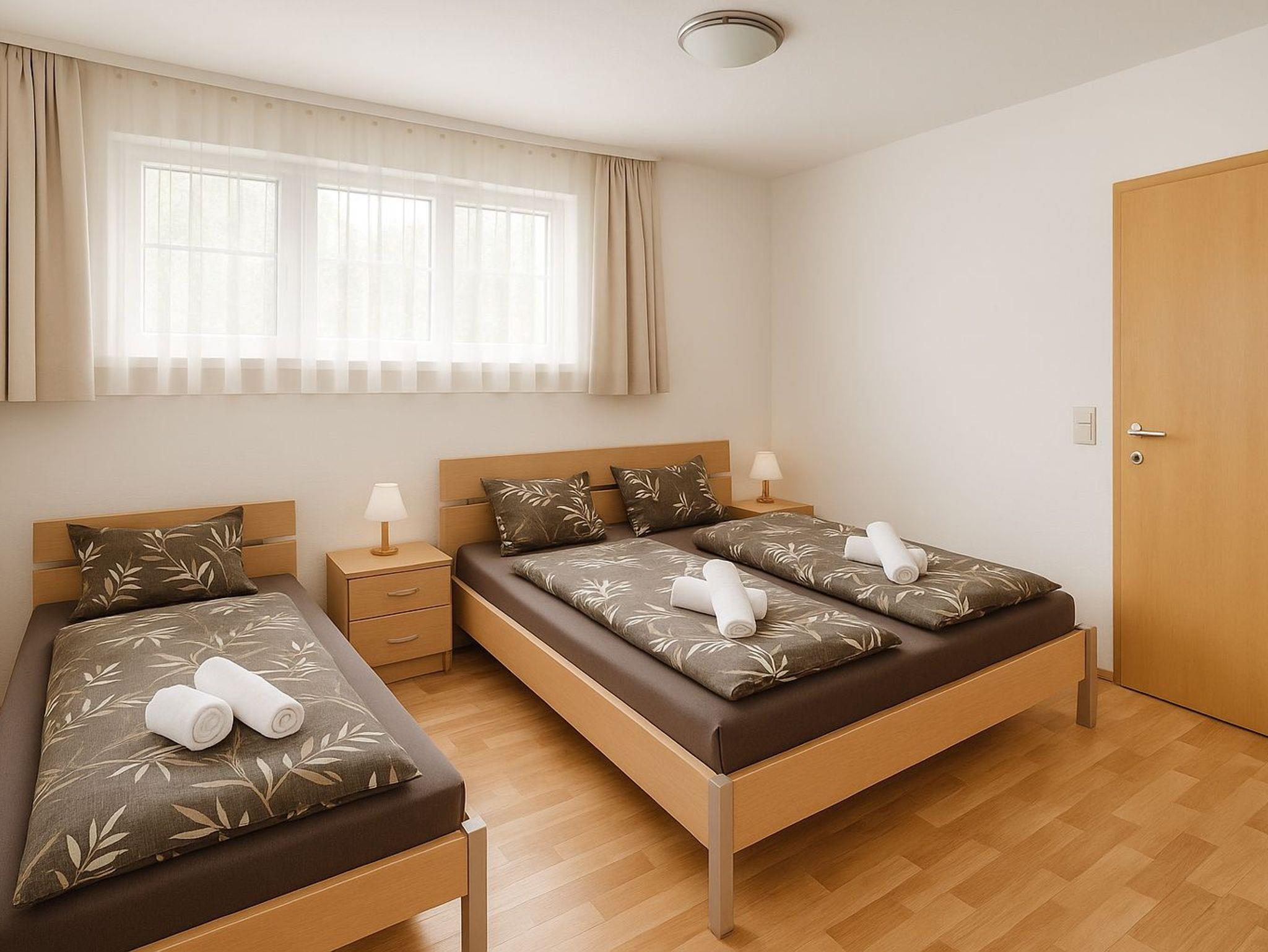 Schlafzimmer: ein Doppelbett 180 x 200 cm, ein Einzelbett 90 x 200 cm