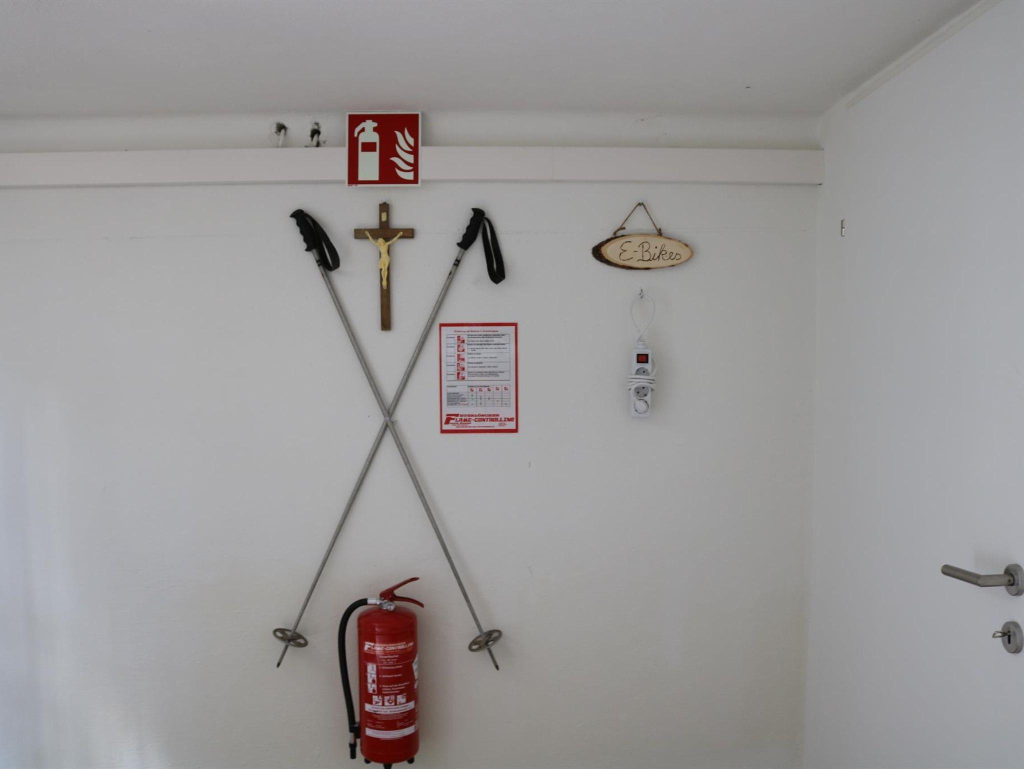 Darüber hinaus befindet sich für unsere Gäste im Kellergeschoss des Hauses ein Ski- und Trockenraum für Skischuhe und Skier mit Heißluftgebläse. Im Sommer kann man dort seine E-Bikes aufladen.