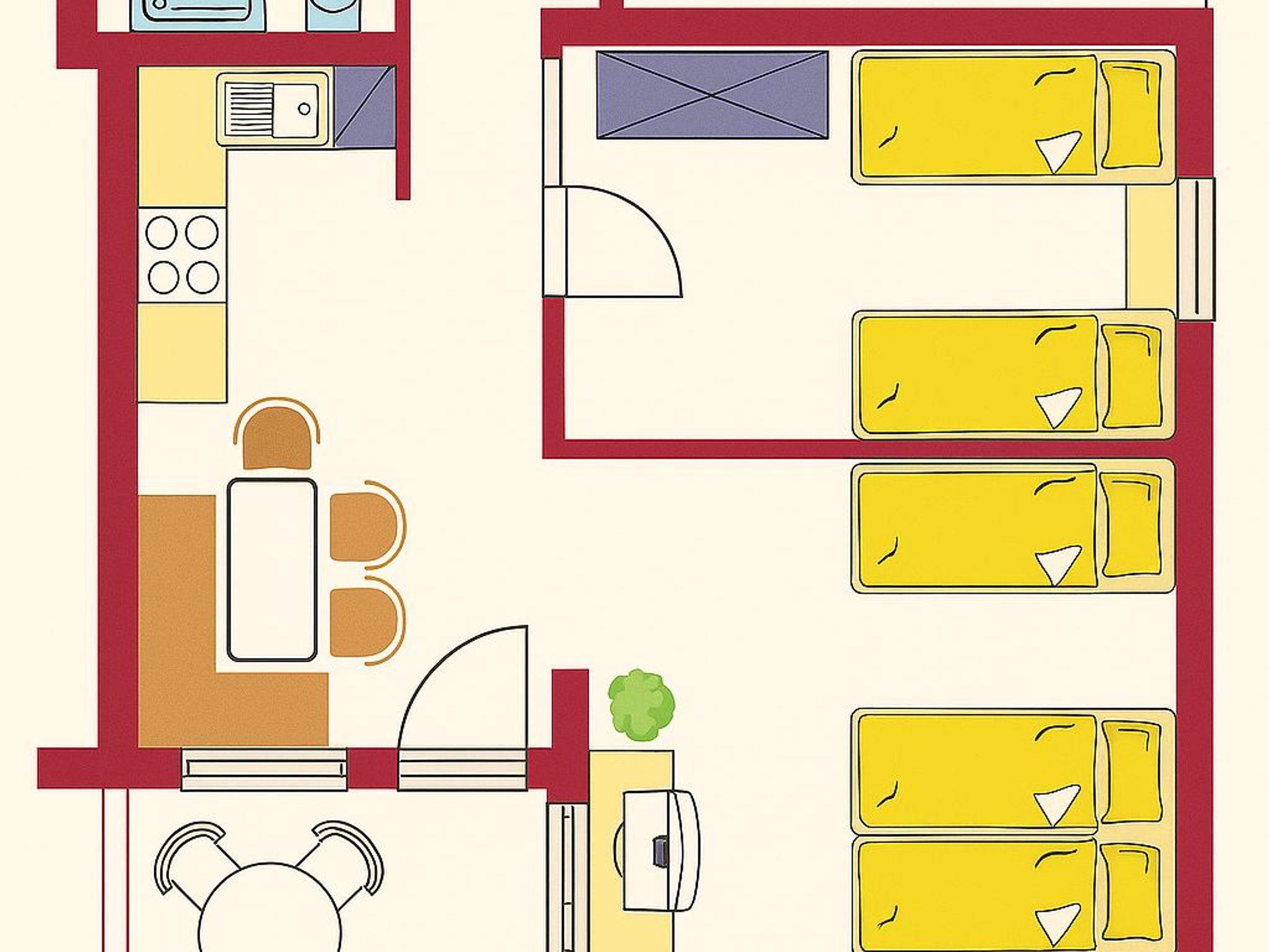 Unser Appartement 1 hat 50 m².Es besteht aus zwei Schlafzimmern, einer Wohnküche, einer Dusche/WC, einem Vorraum mit Garderobe und einer eigenen Terrasse.