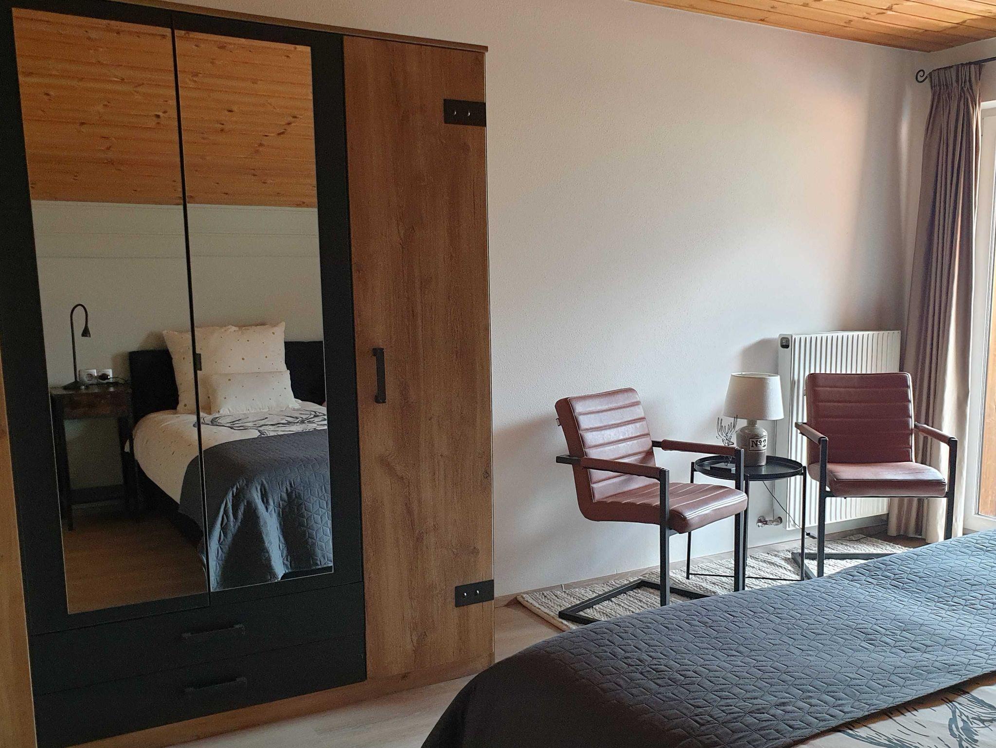 Doppelzimmer-# 2 : Doppelbett ( 180 x 200 ), Kleiderschrank und Sessel. Steckdose in Bettnähe.