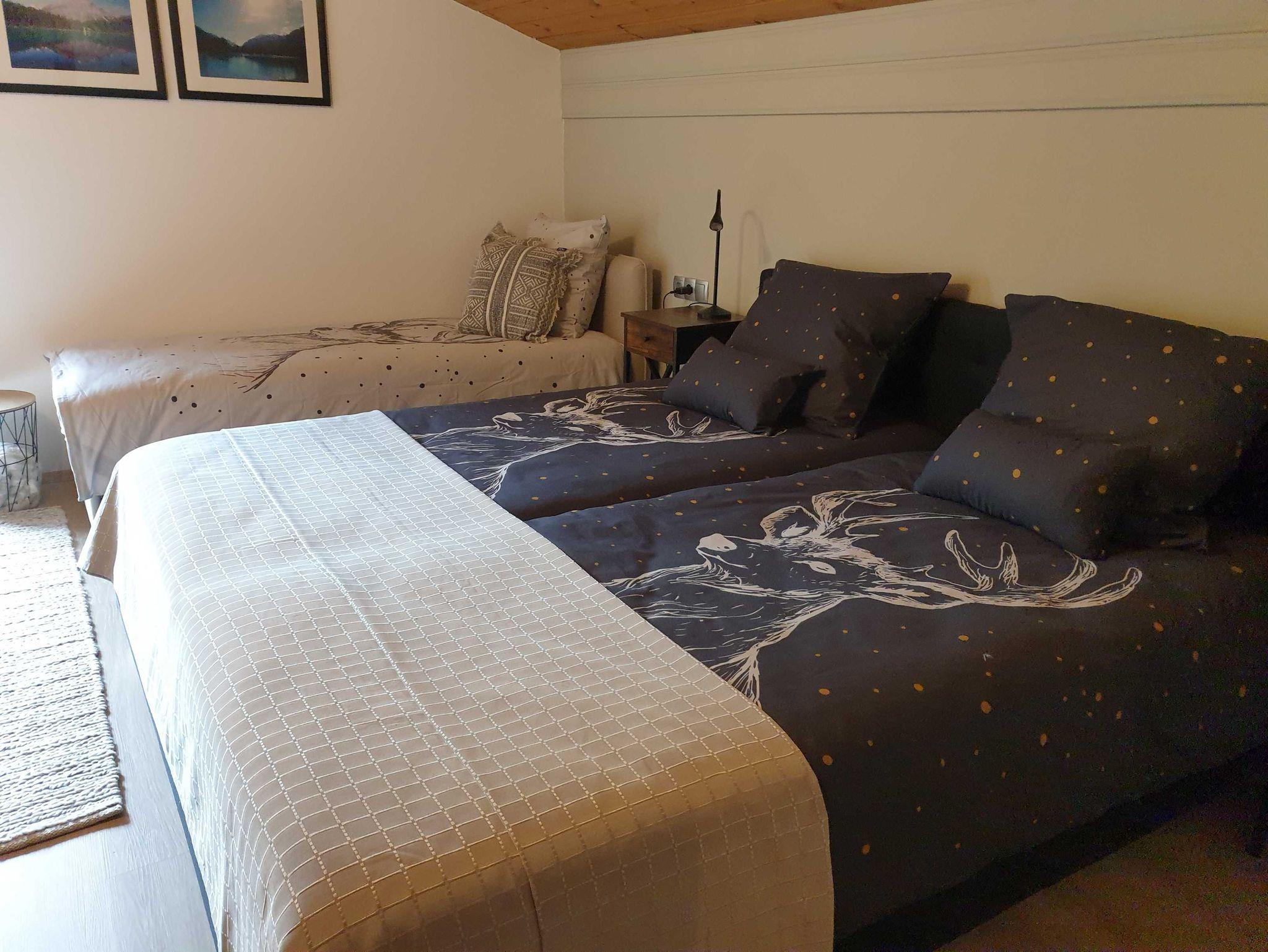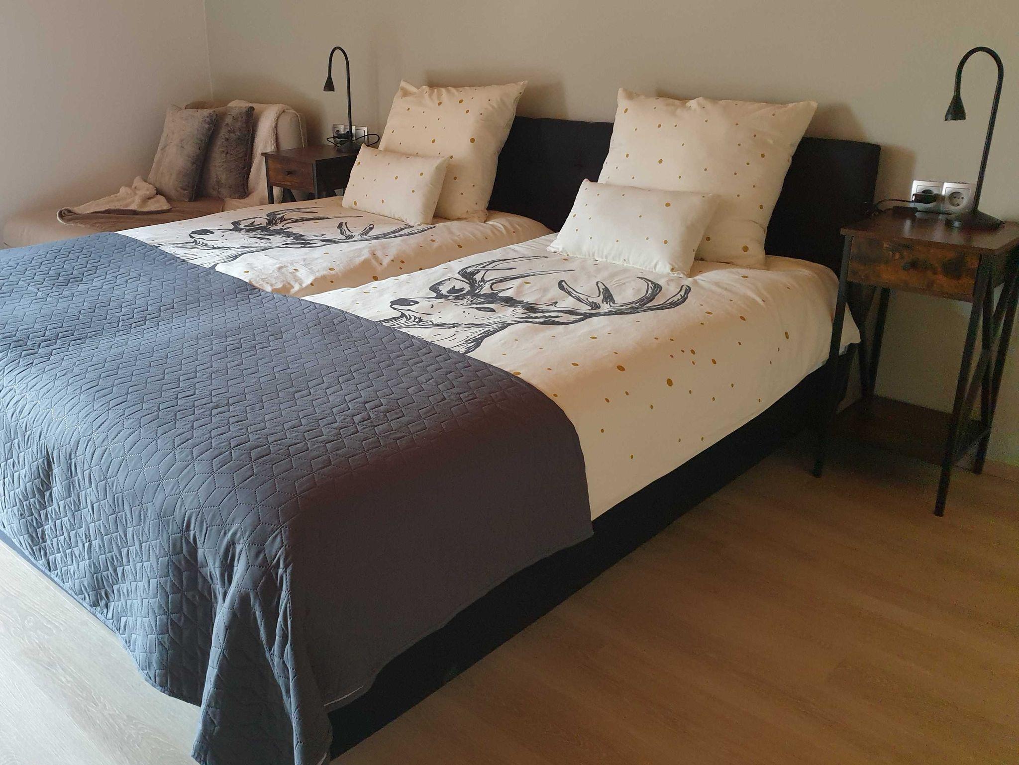 Mit möglichkeit für zwei Zusatz Sofabetten ( 80 x 200 ). Bettwäsche : Bambuskissen, anti-allergische Bettdecke. Direkte Zugang zu dem Grossen Balkon.
