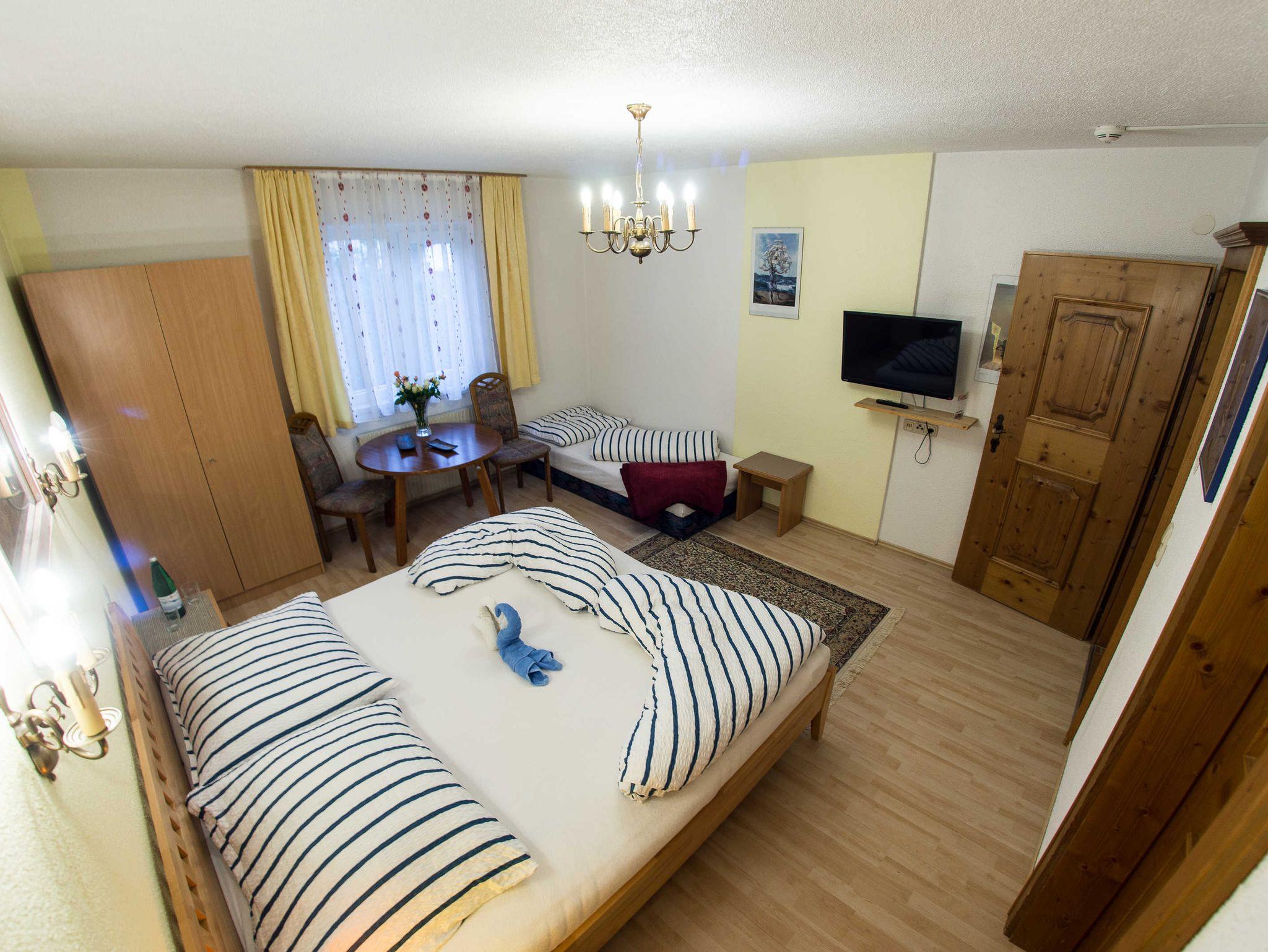 Die Ferienwohnung besteht aus einem Wohnschlafzimmer mit einer kleinen Küche. Ein Sclafzimmer und ein Wohnschlafzimmer.
