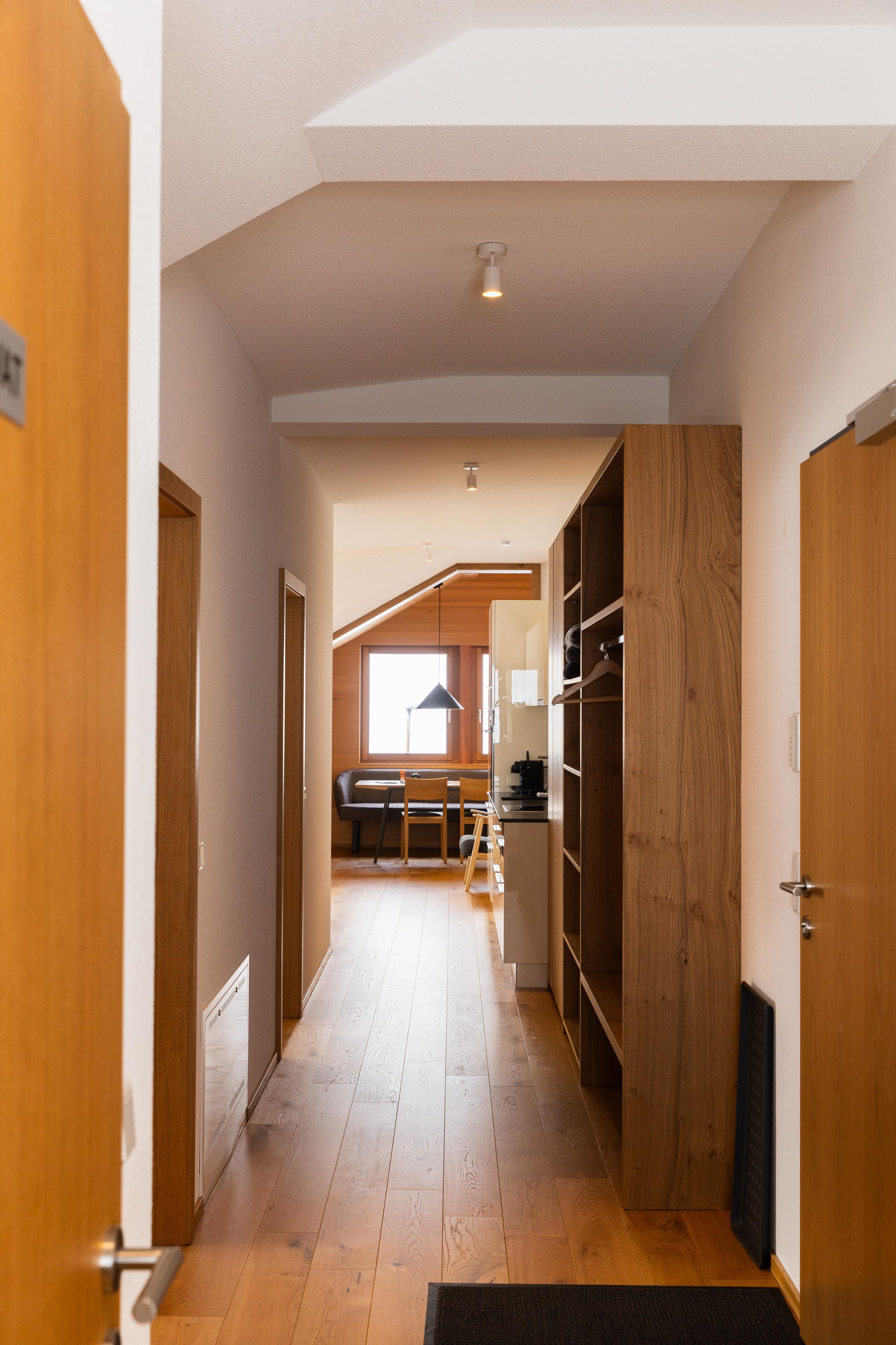 Das Apartment 14 im Berg Aparts Faschina ist sehr liebevoll und auch sehr hochwertig eingerichtet. Der Wohn- und Essbereich bietet mit seinem großen Esstisch und Fenster-Sofa viel Platz zum entspannen und genißen. Der wunderschöne Panoramablick auf die Bergwelt des Großen Walsertals ist einzigartig.