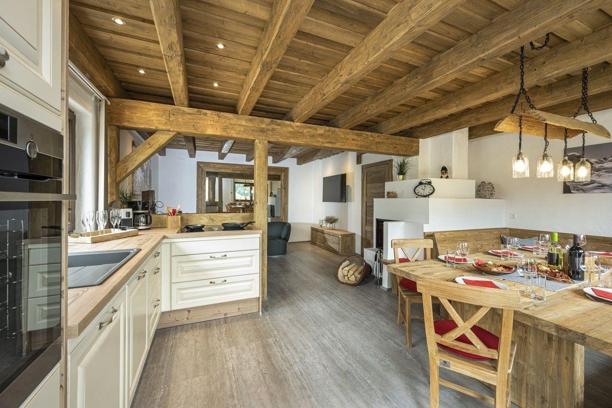 Der großzügige Wohnbereich bildet das Herzstück des Chalets: