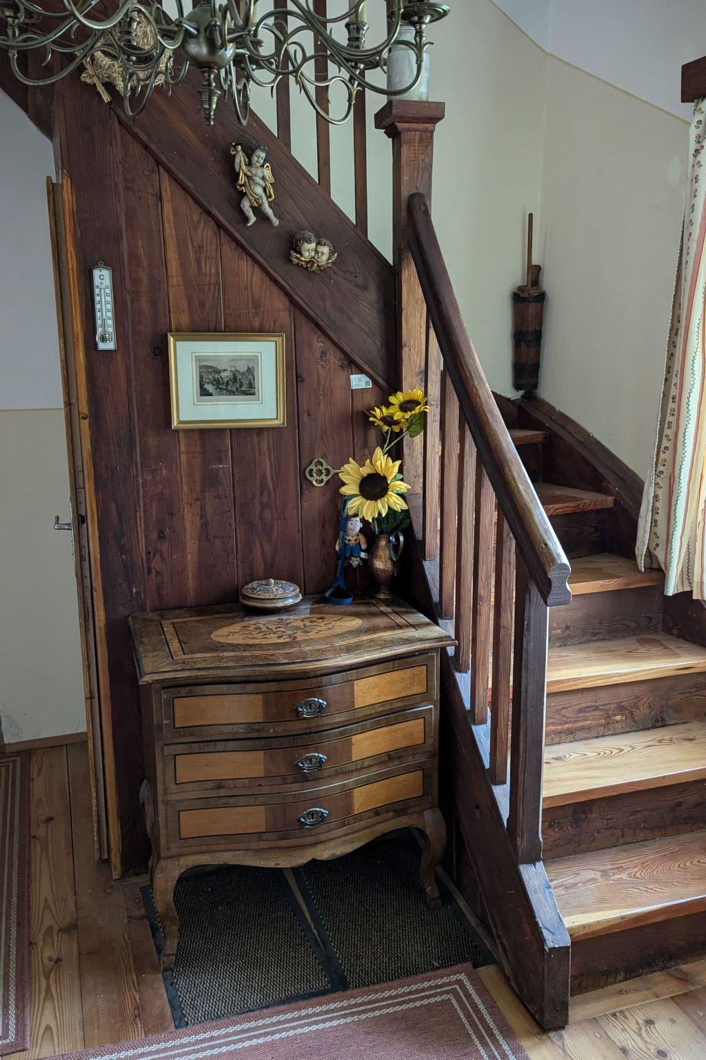The exterior design of the house is also well thought out. Enjoy the fresh mountain air on the terrace or balcony and be inspired by the tranquillity of the surrounding nature. The garden is for exclusive use and guarantees privacy and relaxation in the greenery. For guests travelling with their four-legged friends, the property is securely enclosed by a complete fence so that pets can also enjoy themselves here without any worries.