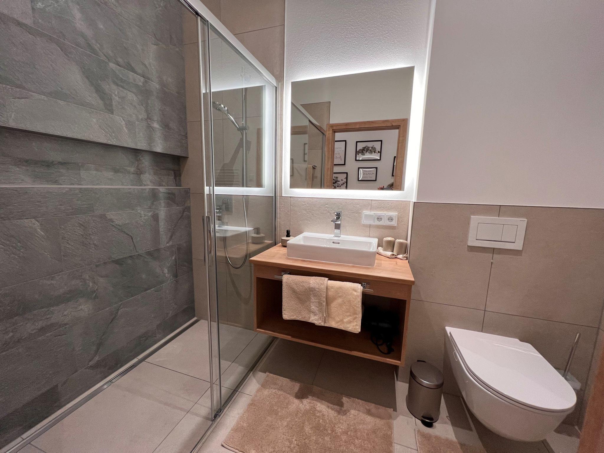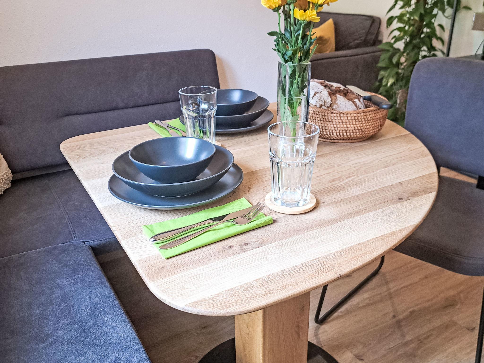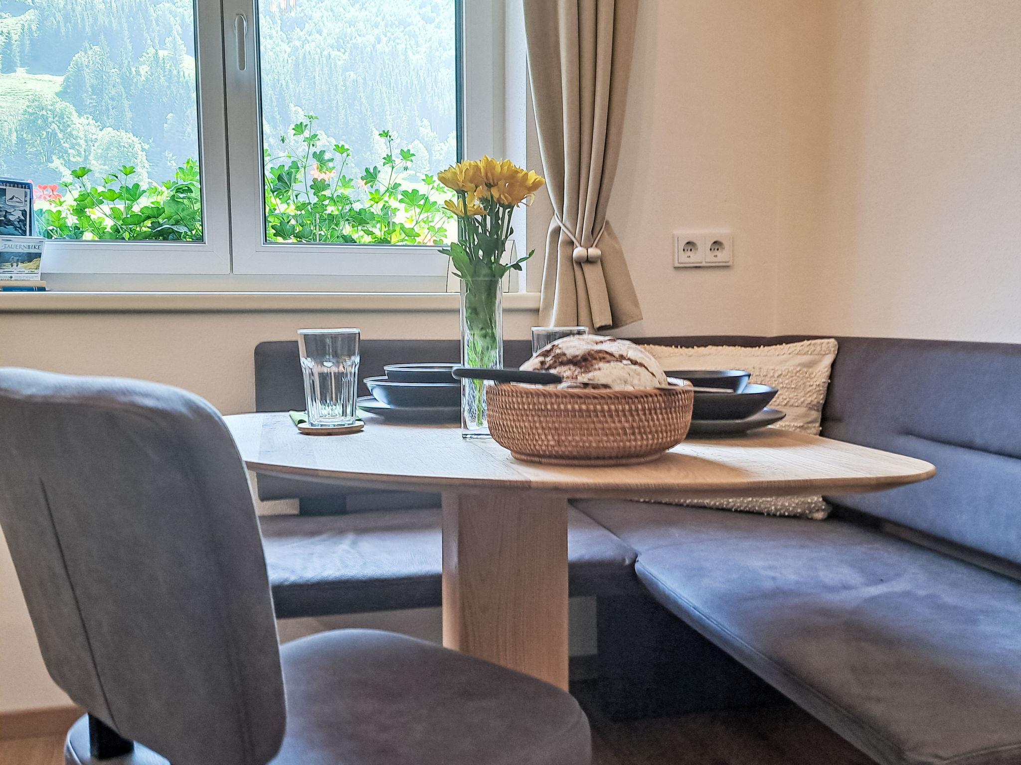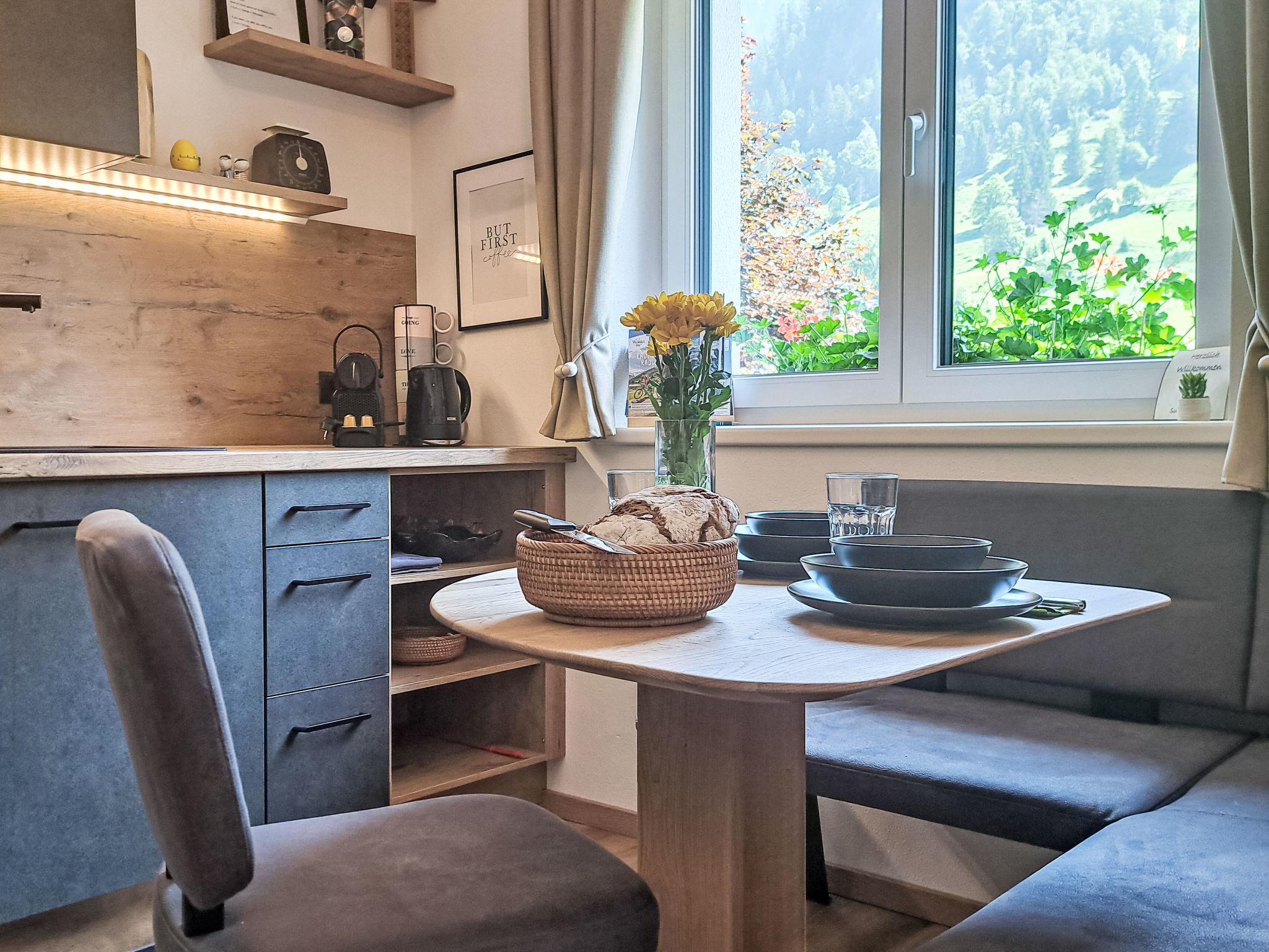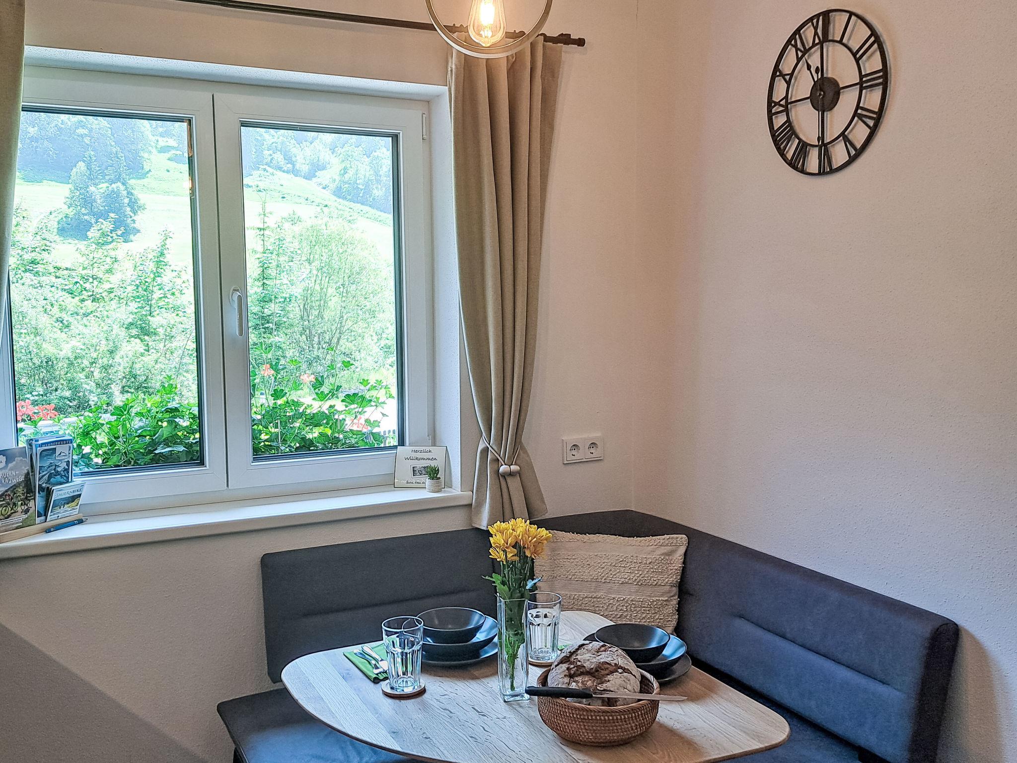 "Apartement Haus Dankl", 2-room apartment 36 m2 on 1st floor. Bright, modern and tasteful furnishings: entrance hall. Living room with cable TV (flat screen). 1 double bedroom. Open kitchen (oven, dishwasher, 4 ceramic glass hob hotplates, toaster, kettle, electric coffee machine) with dining nook. Shower/WC. Underfloor heating. Wooden floors. Balcony 6 m2. Balcony furniture. Beautiful distant view of the mountains and the countryside. Facilities: hair dryer. Internet (WiFi, free). Please note: non-smokers only. Private entrance. 50604-003114-2023