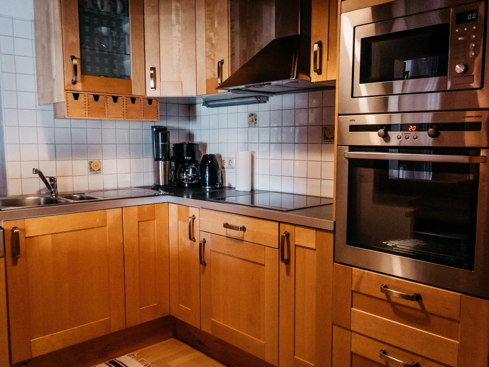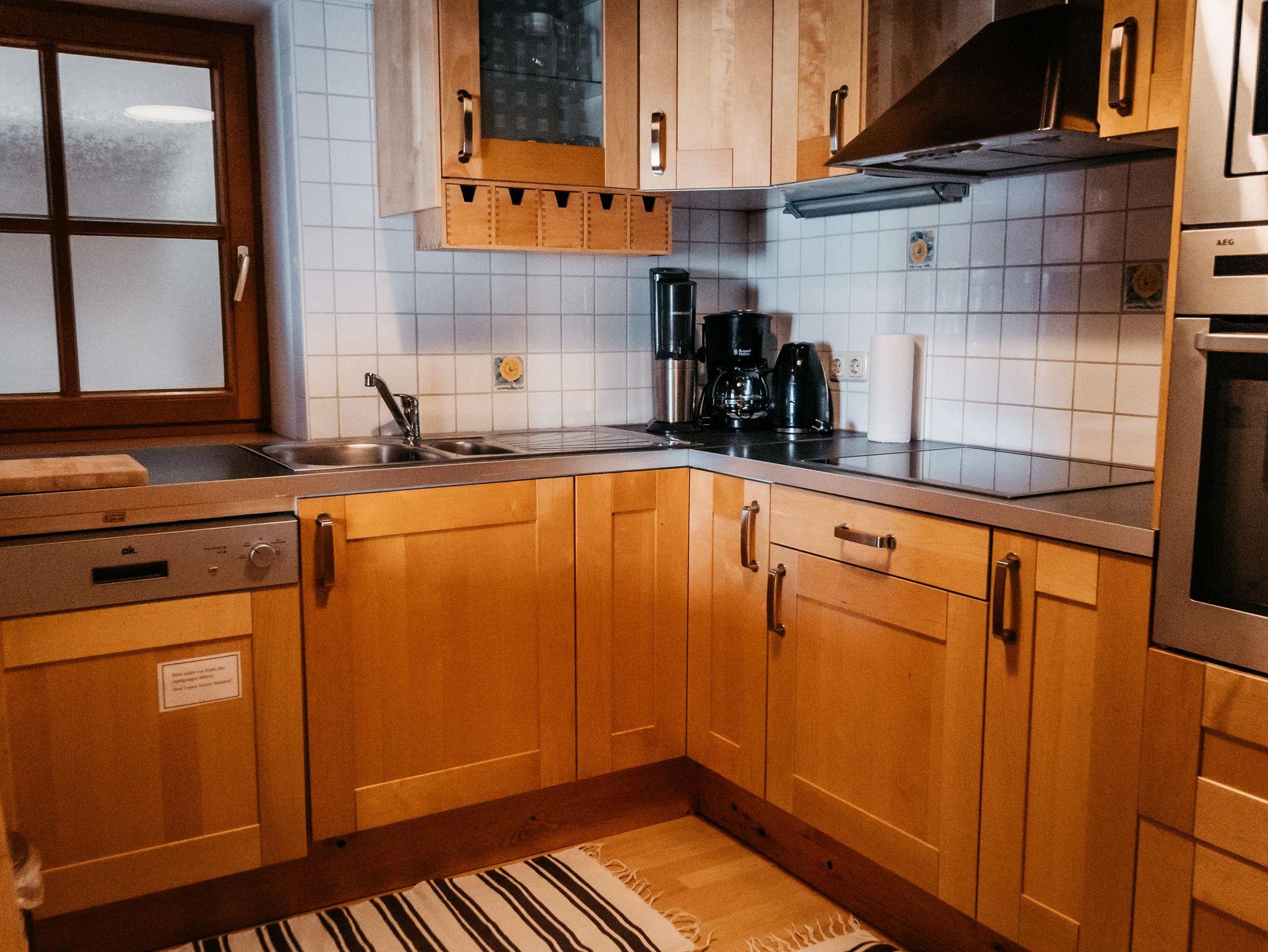 Alle Annehmlichkeiten einer modernen Unterkunft bietet Ihnen unsere Ferienwohnung Filbling mit Bergblick, voll ausgestattete kleine Küche mit Geschirrspüler, Kaffeemaschine, Wasserkocker, Sodawasserbereiter für unser herrliches Trinkwasser direkt vom Berg, Mikrowelle, Toaster, Herd, Backofen sowie Fernseher, kostenloses WIFI und Zugang zum hauseigenen Garten