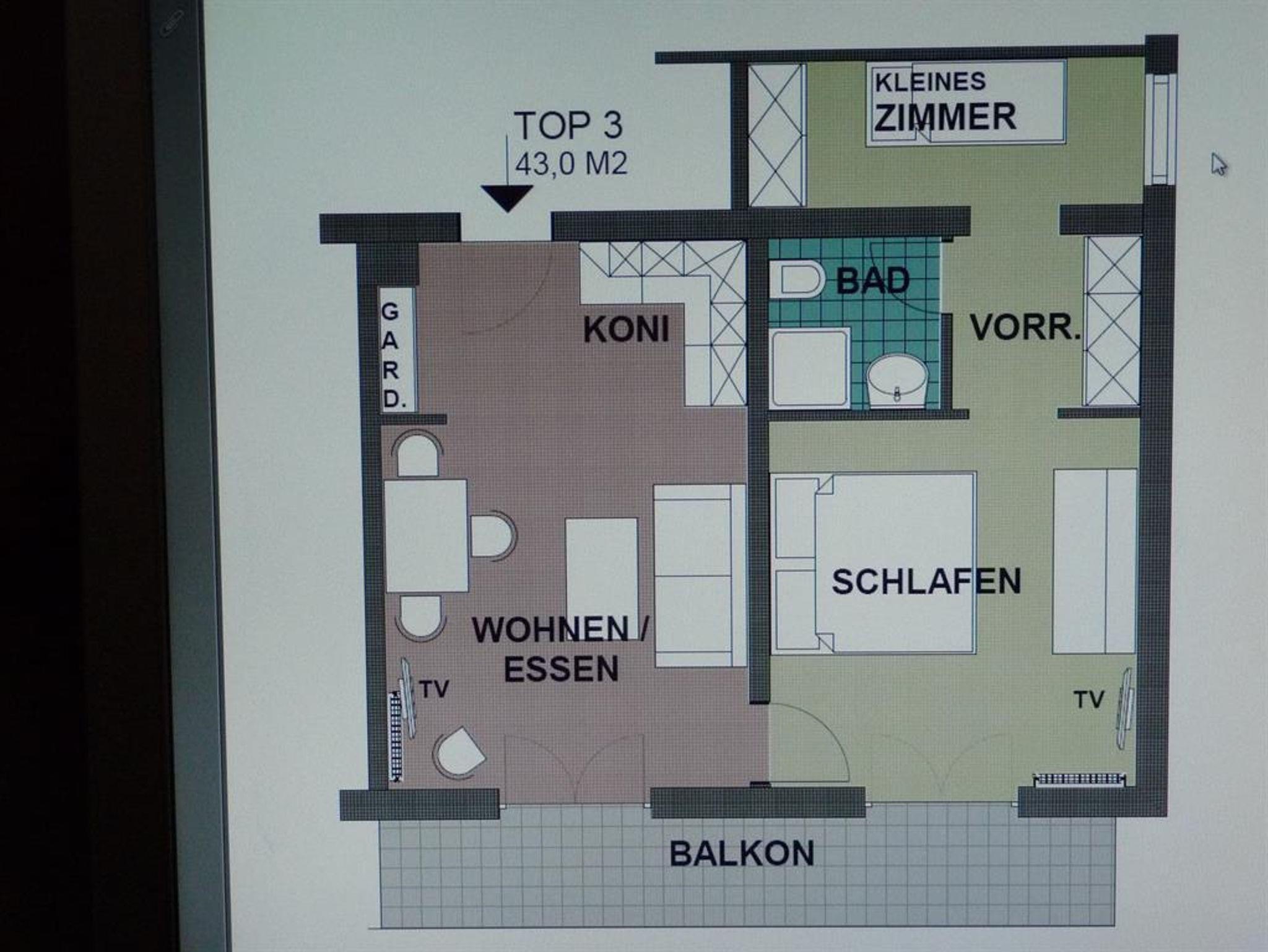 Diese Wohnung befindet sich im ersten Stock. Wohnküche komplett eingerichtet