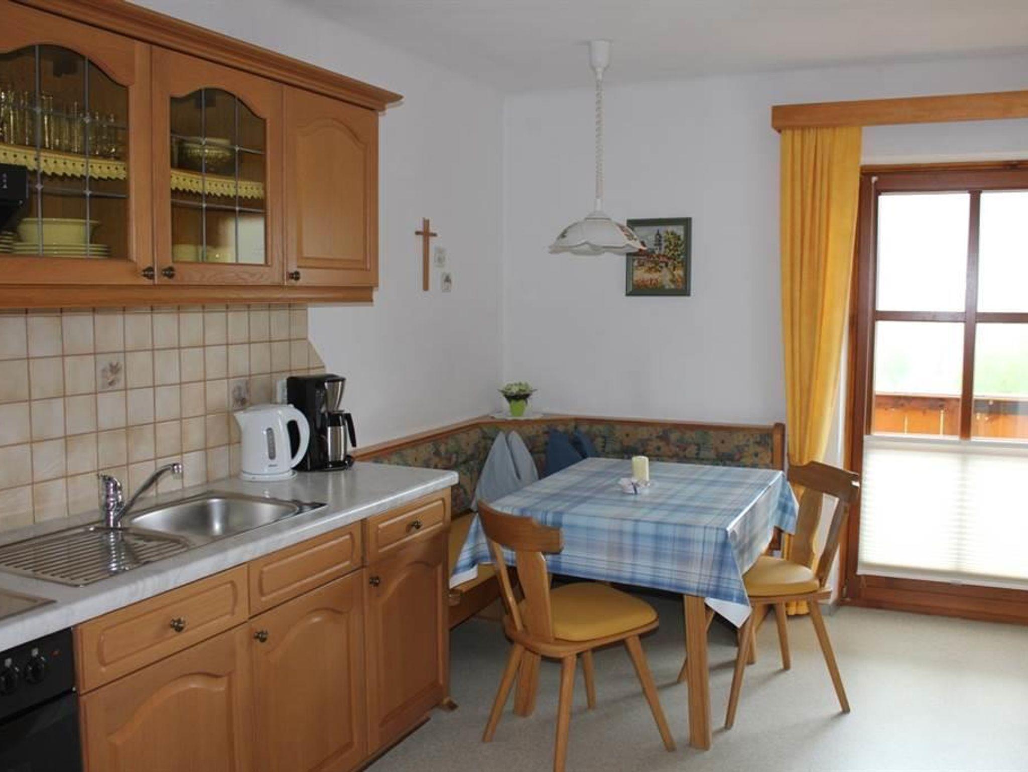 Ferienwohnung 2, Ellmaustein Die Wohnung besteht aus zwei getrennten Schlafzimmern, einer Wohnküche, Badezimmer mit Badewanne, WC extra, Vorraum, zwei Balkone. Die Wohnküche ist sehr gut ausgestattet, Geschirrspüler, Kaffeemaschine, Wasserkocher, Kabel-TV in Wohnküche und im Schlafzimmer