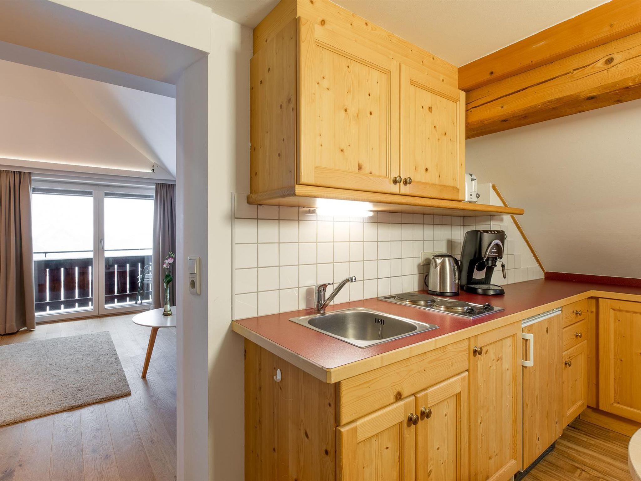 Unsere FW Studio 9 bietet Platz für max. 2 Erwachsene und ein Kind. Die Wohnung besteht aus einem gemütlichen Wohnschlafraum mit Balkon und Blick über das Dorf und in die Berge, FLat-TV, W-Lan gratis, kleiner Küche mit Esstisch und einem geräumigen Badezimmer mit DU/WC, Fön. Bettwäsche, Geschirrausstattung, Wasserkocher, Kaffeemaschine etc. und ein 2 Plattenherd sind vorhanden. Gerne können Sie auch Frühstück dazubuchen.