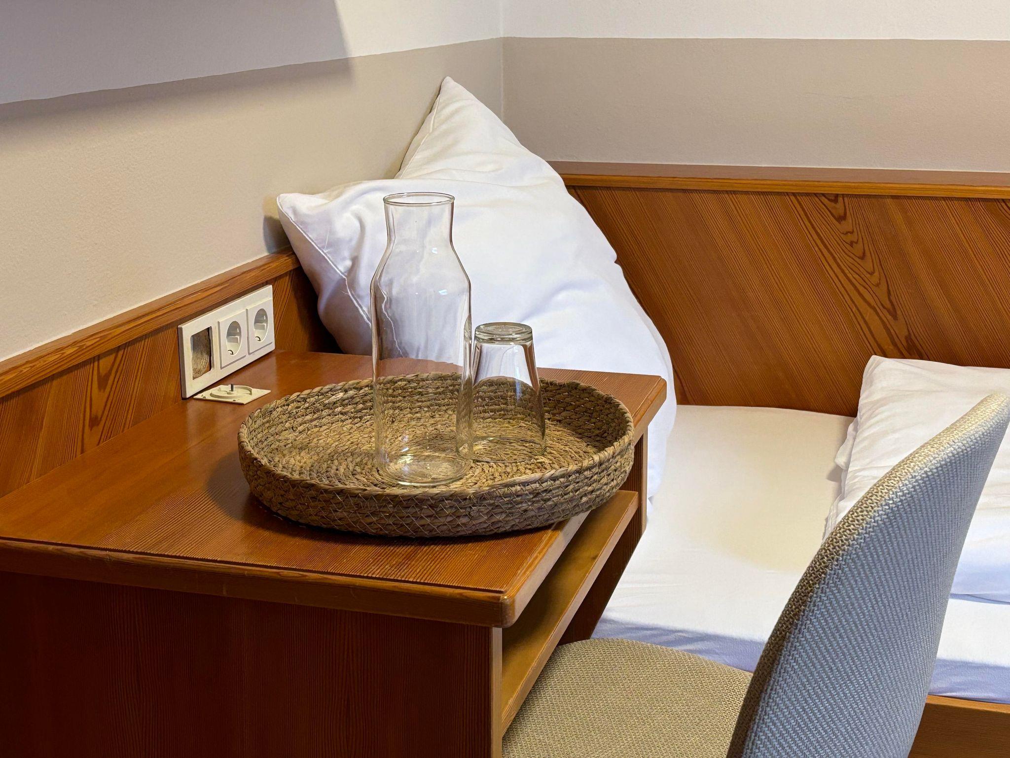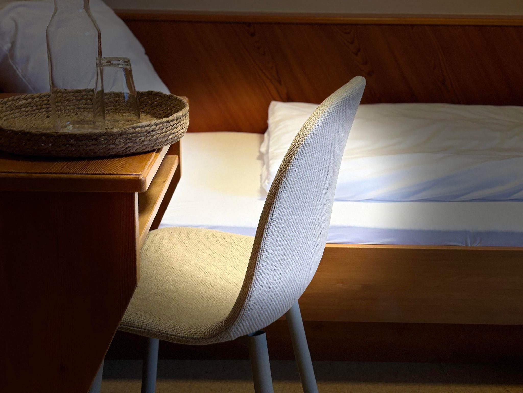 Dieses gemütliche etwas kleinere Einzelbettzimmer verfügt über einen Balkon.