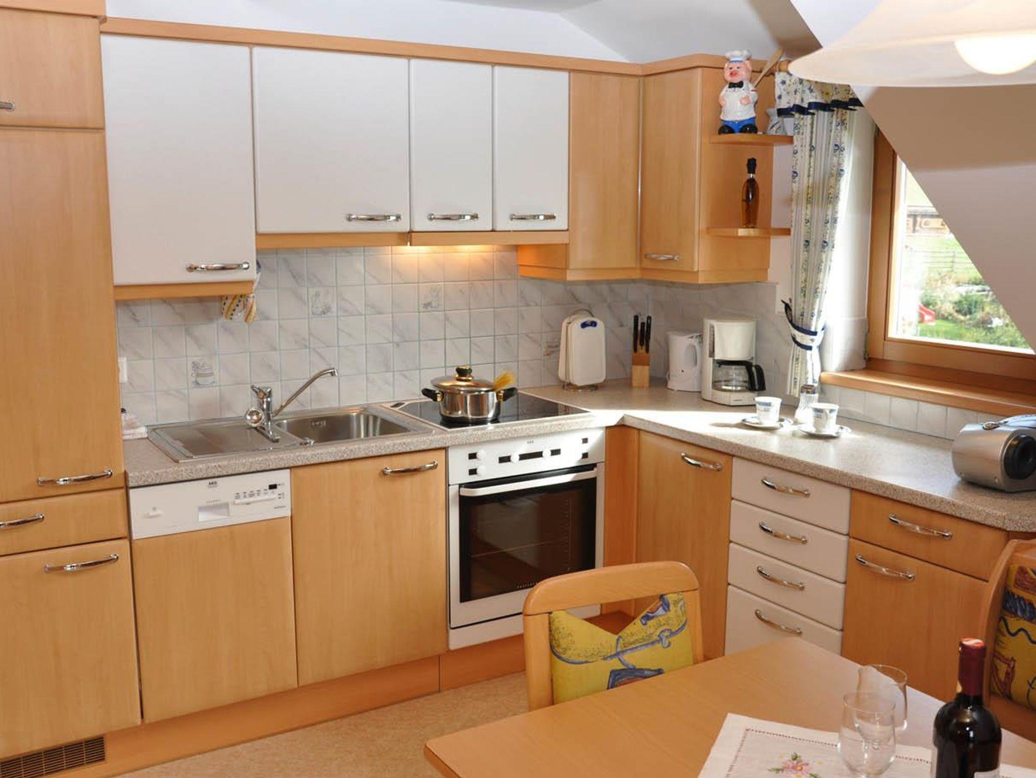 Vorraum, Dusche und WC getrennt, gemütliche Wohnküche und Sitzecke und Couch, Sat-TV, Radio, 2 Schlafzimmer, großer sonniger Balkon mit freiem Ausblick. Die Küche ist komplett eingerichtet: mit Geschirrspüler, Bettwäsche und Handtücher