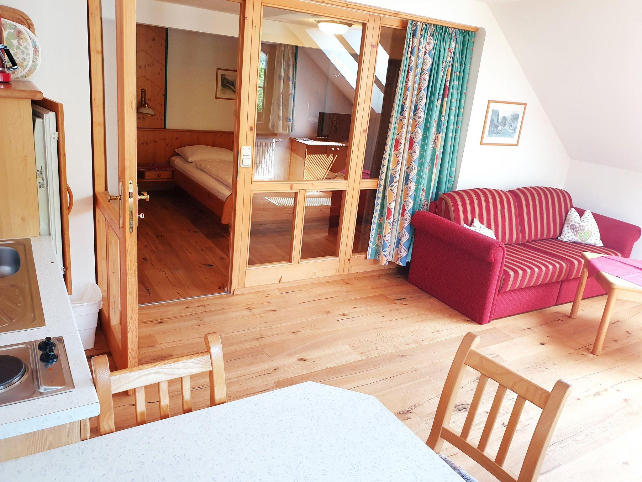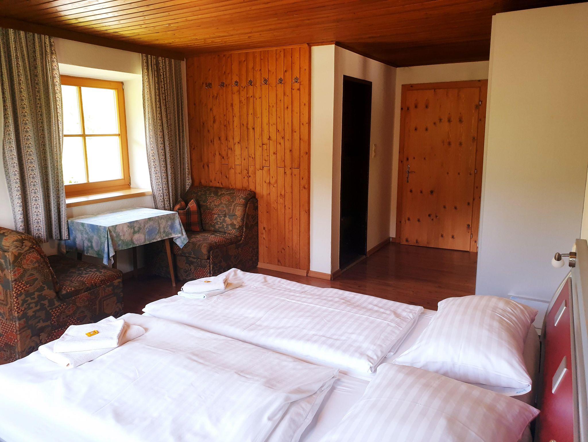 Komfortzimmer Silberdistel (106/108) Komfortables ruhiges Doppelzimmer mit DU/WC, Flatscreen-Sat-TV, Kühlschrank, Telefon, gratis W-Lan (WIFI) im Zimmer, Haartrockner und Hotelsafe, Blick in das südliche und östliche Göriachtal. Auf Wunsch Halbpension mit Menüwahl.
