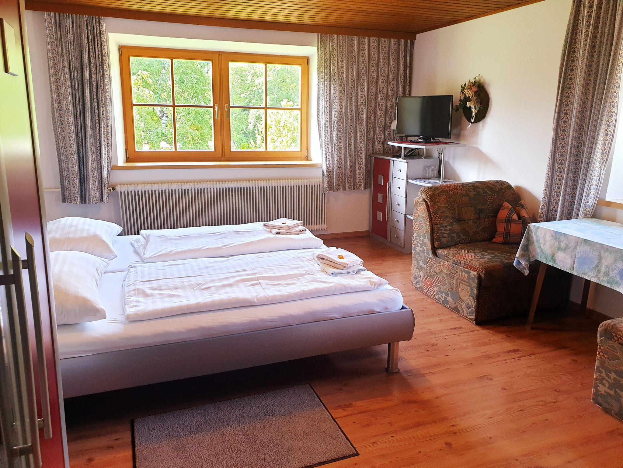 Komfortzimmer Wildkirsche (107/110) 3-Sterne Doppelzimmer, komfortabel und ruhig, mit DU/WC, gemütlicher Ausziehcouch, Balkon, Flatscreen-Sat-TV, Kühlschrank, Telefon, gratis W-Lan (WIFI) im Zimmer, Haartrockner und Hotelsafe, Blick in das südliche und westliche Göriachtal. Auf Wunsch Halbpension mit Menüwahl.