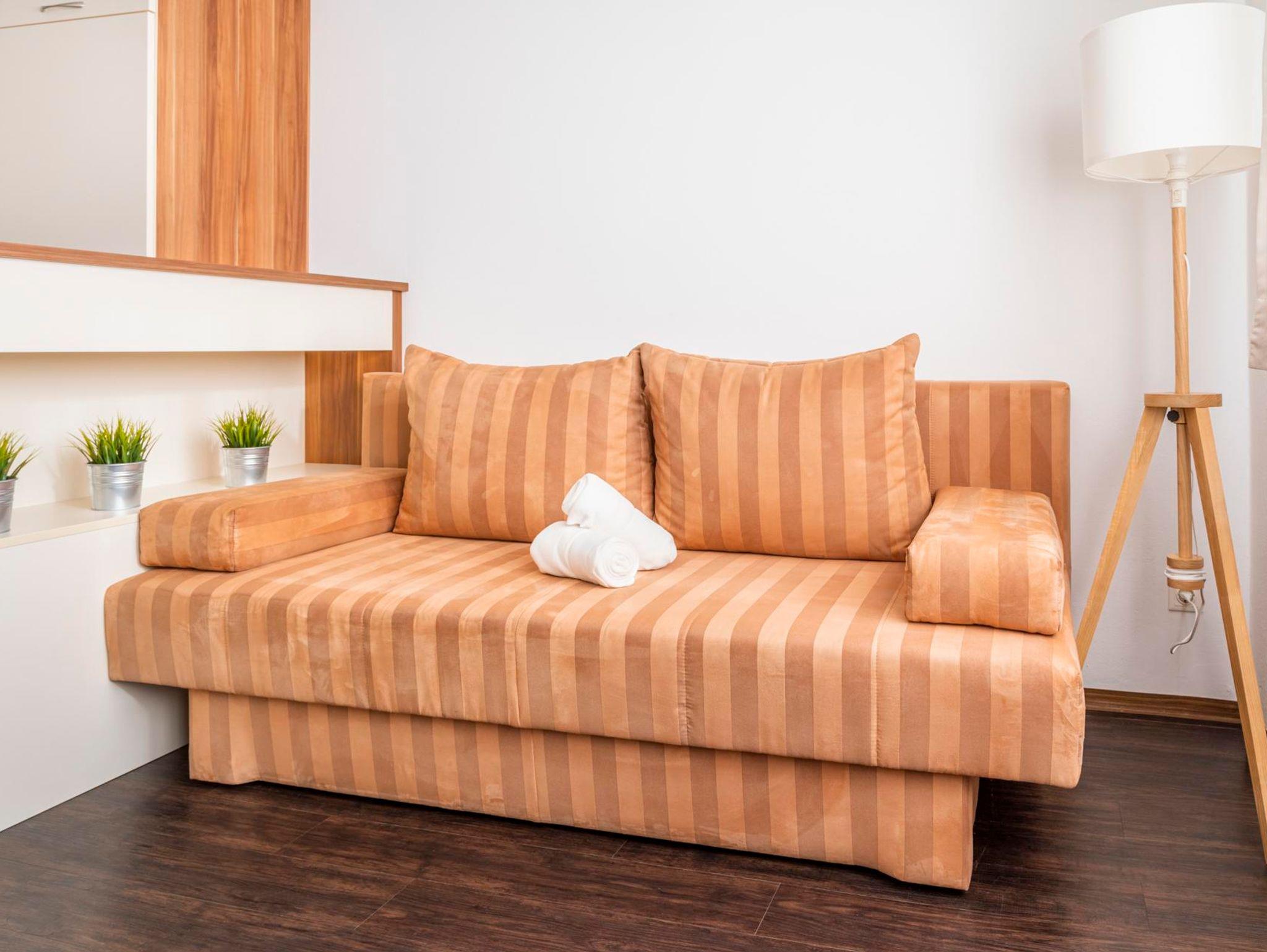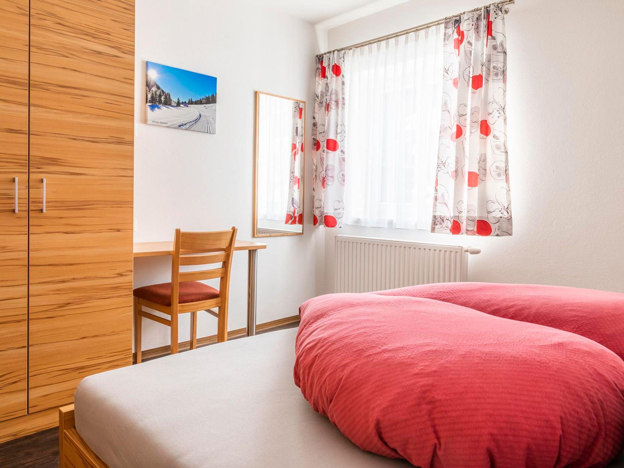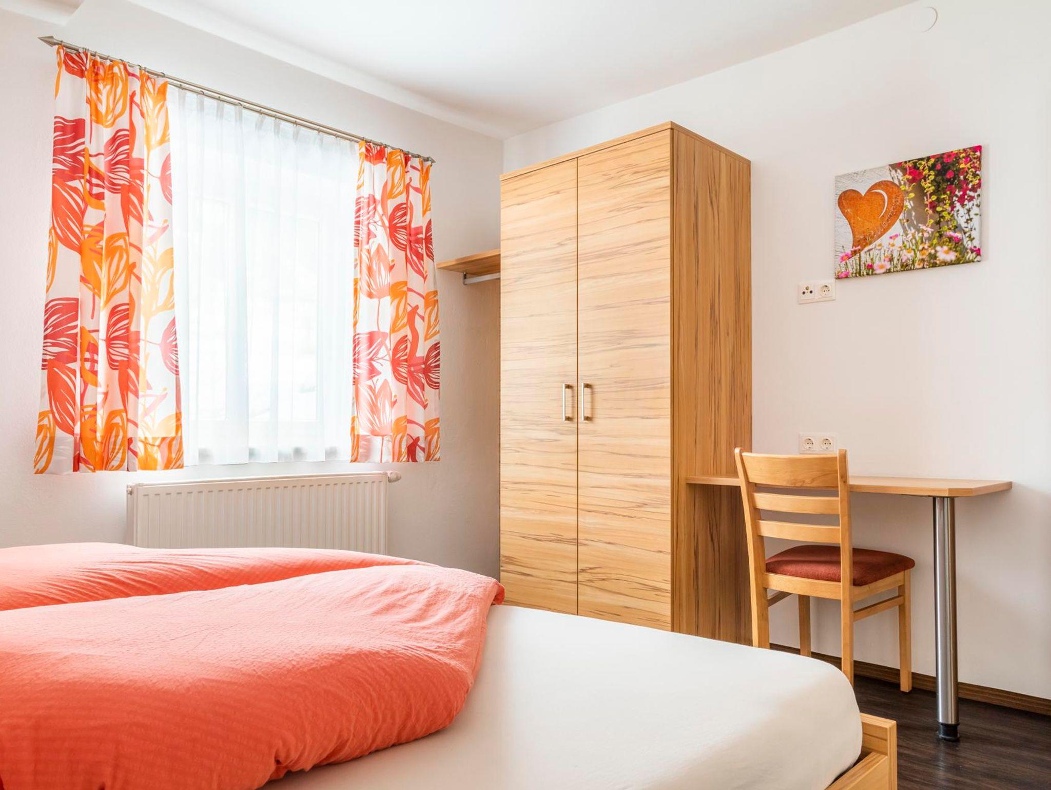 Appartement: Große, neu,e voll ausgestattete Küche mit Essecke und großer Couch, SAT-TV, W-LAN Anschluß. Zimmer: Sind alle vom Wohnbereich getrennt, je 1 Fenster, Holzmöbel, Wandschrank, Garderobe, Wandspiegel, Tisch u. Stuhl, DU u. WC sind voneinander getrennt.
