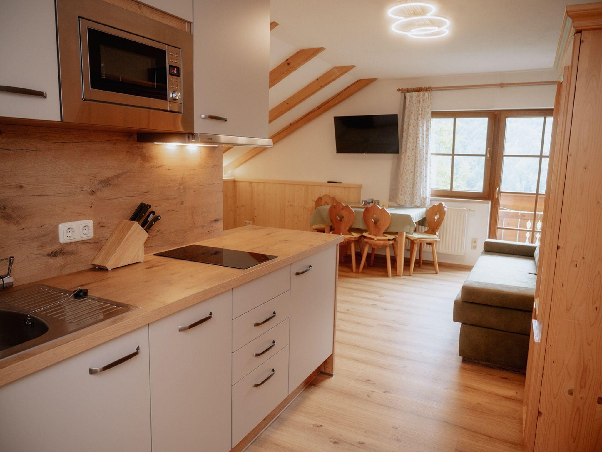 Unser liebevoll ausgestattetes Zimmer Zum Nussbaum befindet sich im 2. Stock und verfügt über einen Balkon mit Blick auf das Hochkar, eine voll ausgestattete Kochnische (Herd, Geschirrspüler, Filterkaffeemaschine, Mikrowelle, Kühlschrank, Besteck, Geschirr, Töpfe,...), Sat-TV und Etagenbett.