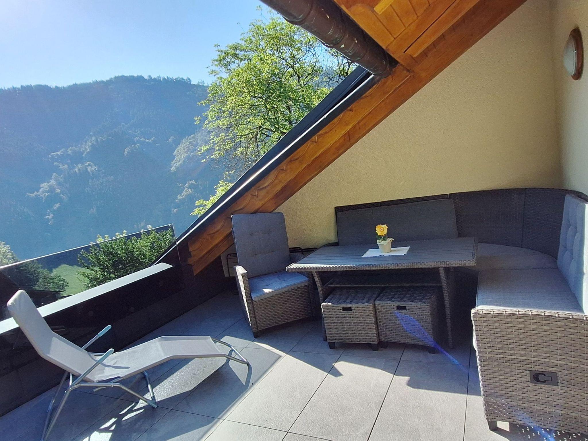 Neben getrenntem Schlaf-und Wohnraum gehört auch eine große Terrasse mit Panoramablick auf die Göstlinger Wälder zur Wohnung.