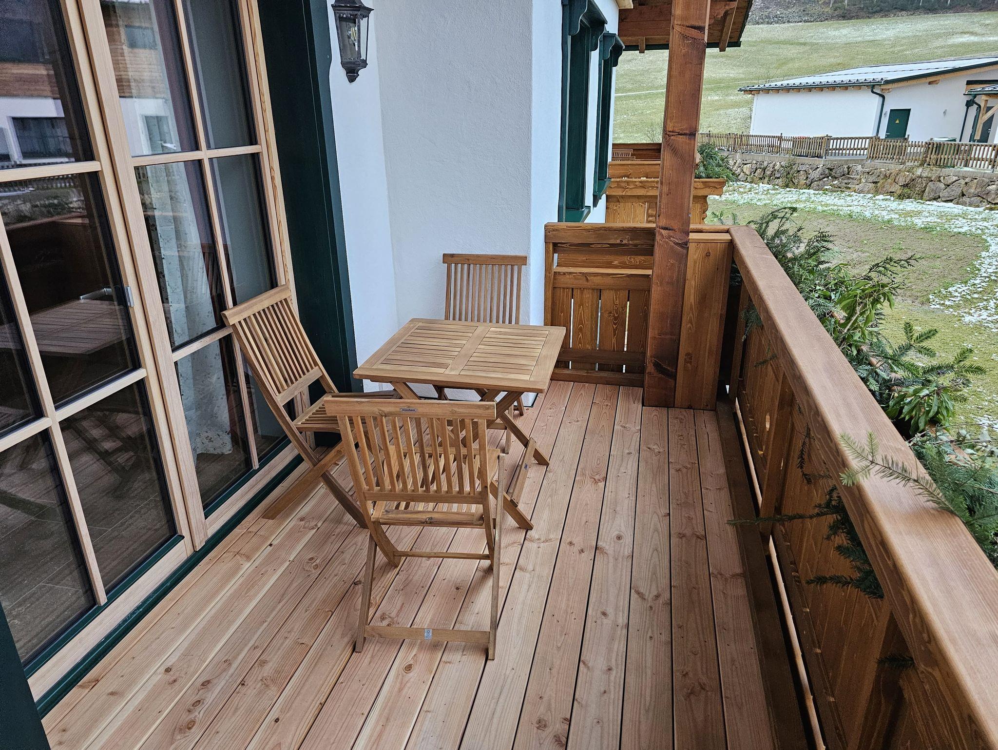 *Apartment Buche und Apartment Lärche: Jeweils mit zwei Schlafzimmern und einem einladenden Balkon, gelegen im 1. Stock des Hauses.