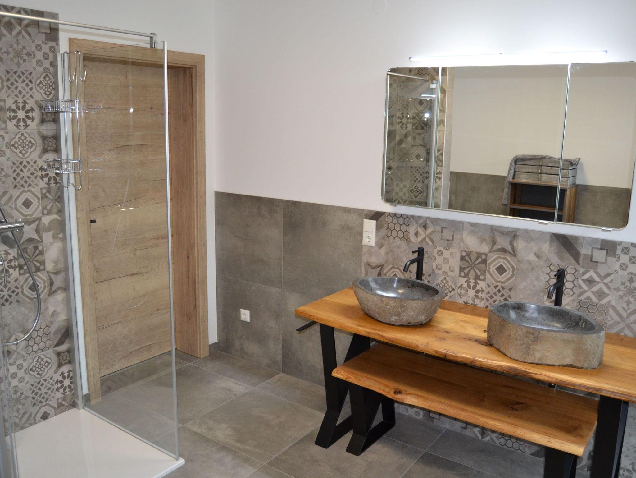 Im Erdgeschoss befindet sich ein geräumiges Vorzimmer mit genügend Stauraum für Jacken und Schuhe, ein kleines Badezimmer mit WC und Dusche, sowie ein Wohn-/Essbereich mit ausziehbarer Schlafcouch, Flachbild-Sat-TV, Bluetooth Soundbar und eine voll ausgestattete Küche.