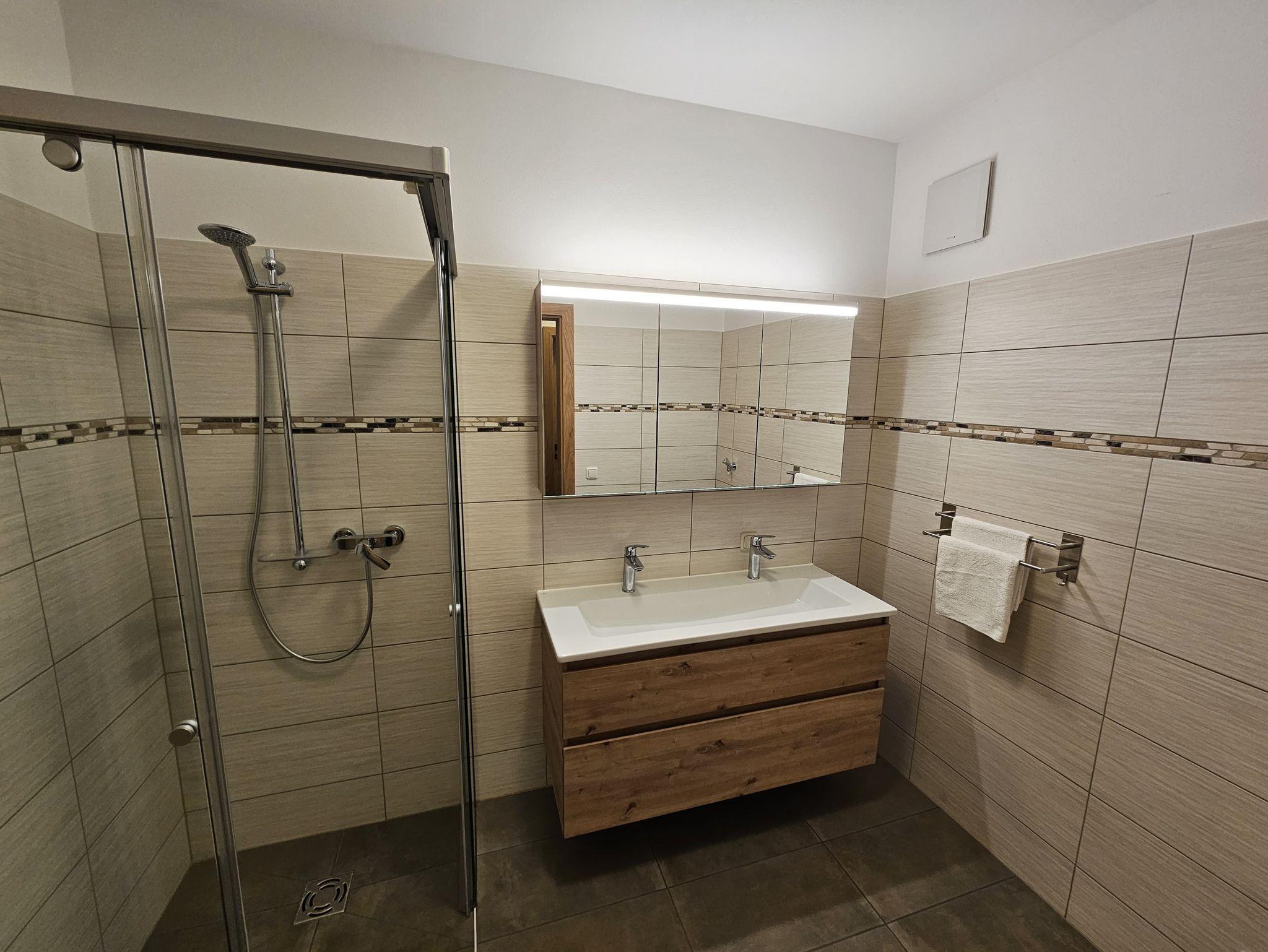 Jede Wohnung bietet modernen Komfort und ist vollständig ausgestattet, inklusive Kaffeemaschine, Küche mit Backrohr, Kühlschrank und großzügigen Badezimmern. Im Erdgeschoss des Hauses befindet sich ein beheizter Abstellraum zum Lagern der Ski- und Wanderschuhe. Das Gehen mit Skischuhen ist im gesamten Ferienhaus untersagt.