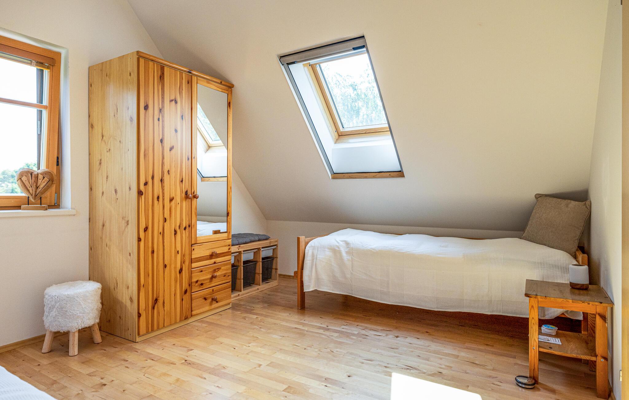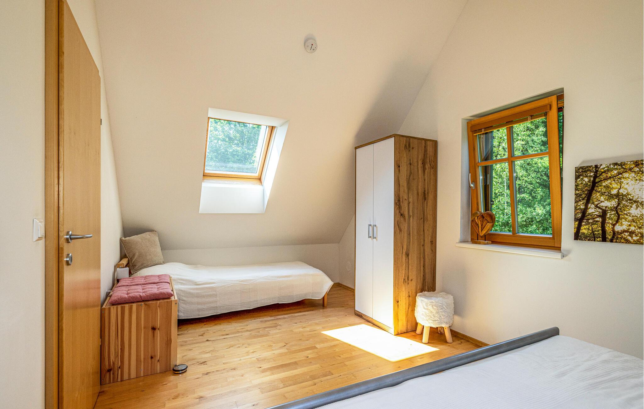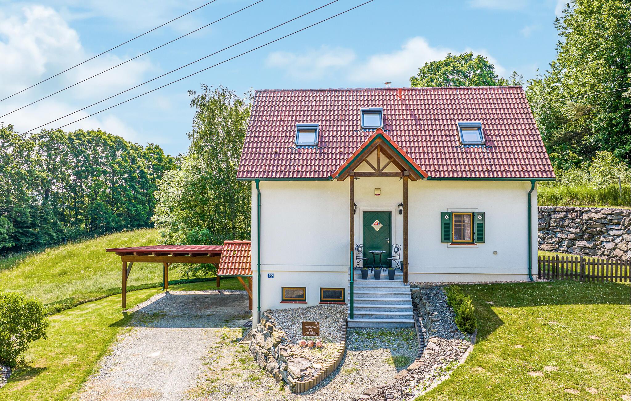 Huset ligger i Uhudler-vinens hjemland og kun et stenkast fra smukke cykel- og vandrestier, så her får I den ideelle base for familier, aktive feriegæster og feinschmeckere. Huset er rummeligt, og indretningen fremtræder lyst og flot med mange træelementer, der skaber en varm og rar atmosfære, som man ikke kan andet end slappe af i. Kom tilbage hertil efter en aktiv feriedag og hvil stængerne med en god bog i sofaen, inden I finder roen i de behagelige soveværelser.