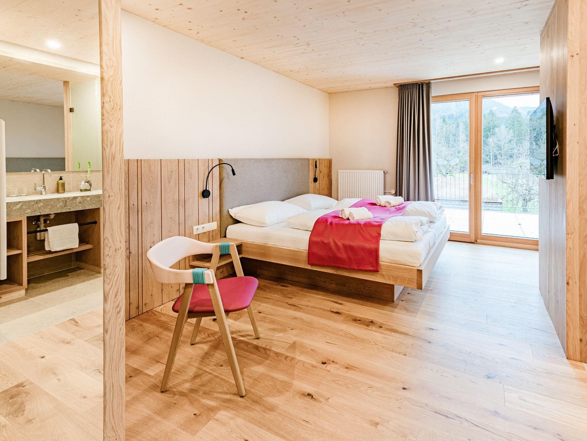 Erleben Sie pure Entspannung in unserem neuen Zimmer Panoramablick, wo Komfort auf Natur trifft. Wie alle unsere Räumlichkeiten ist auch dieses Zimmer mit sorgfältig ausgewählten Naturmaterialien ausgestattet, die eine beruhigende und gesunde Atmosphäre schaffen.