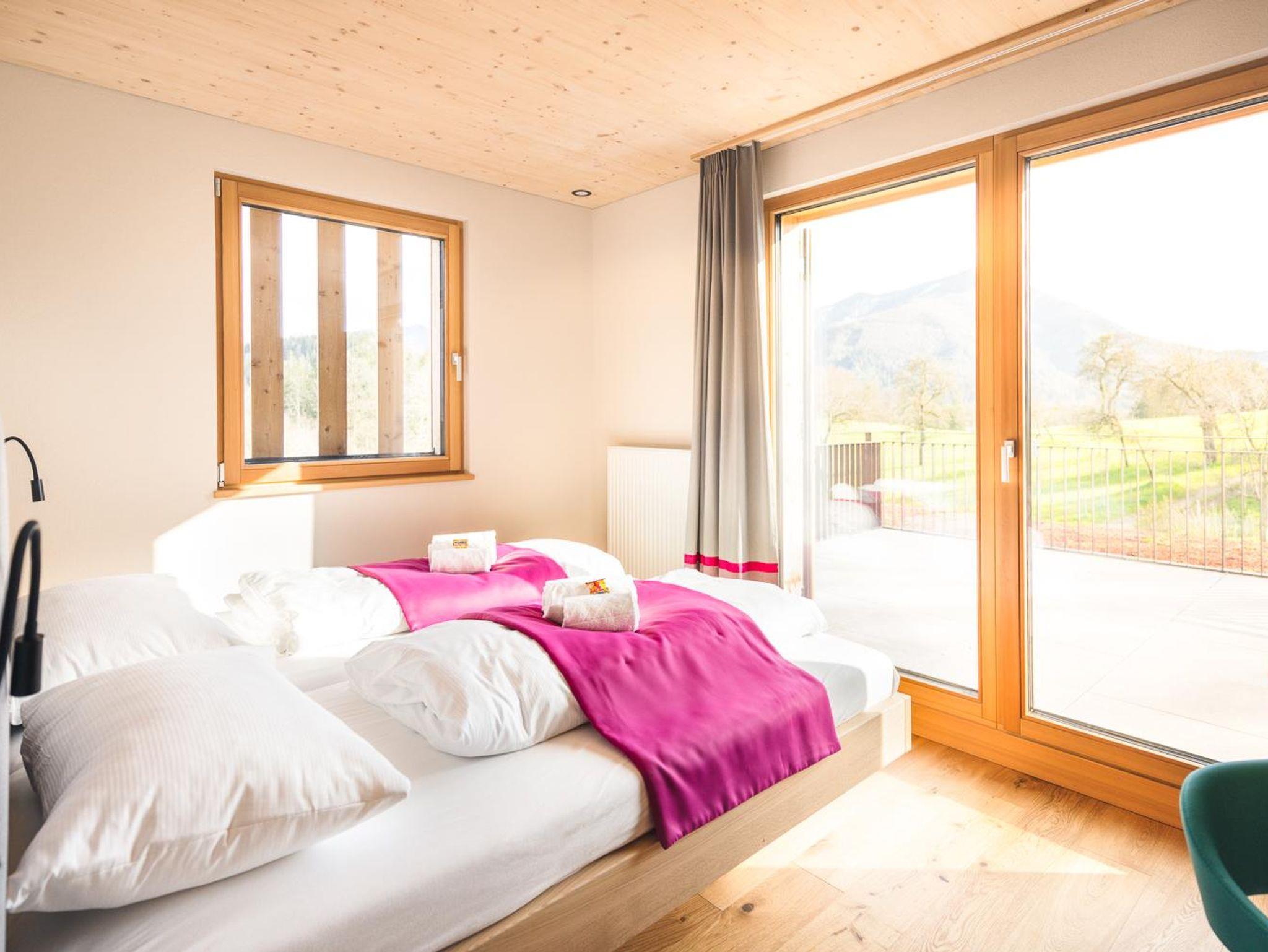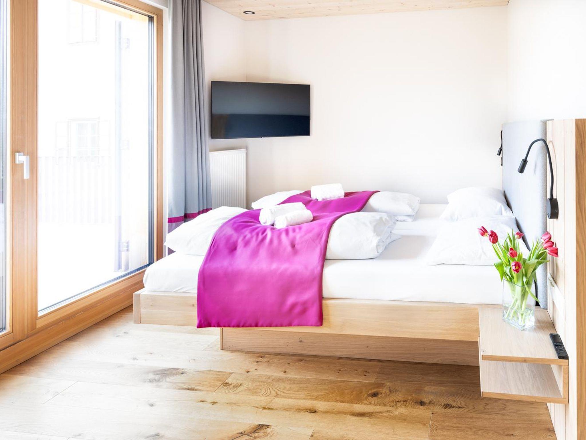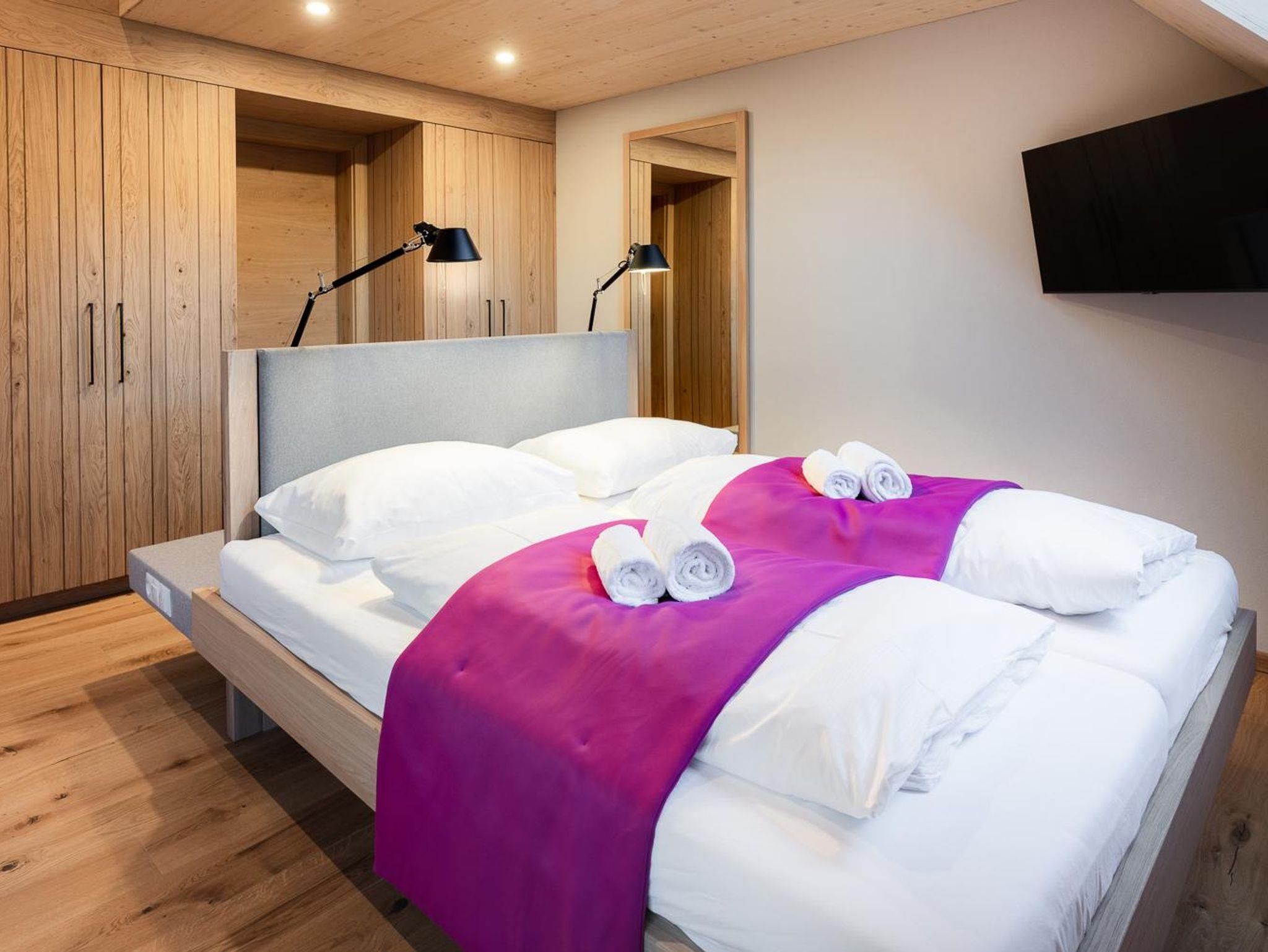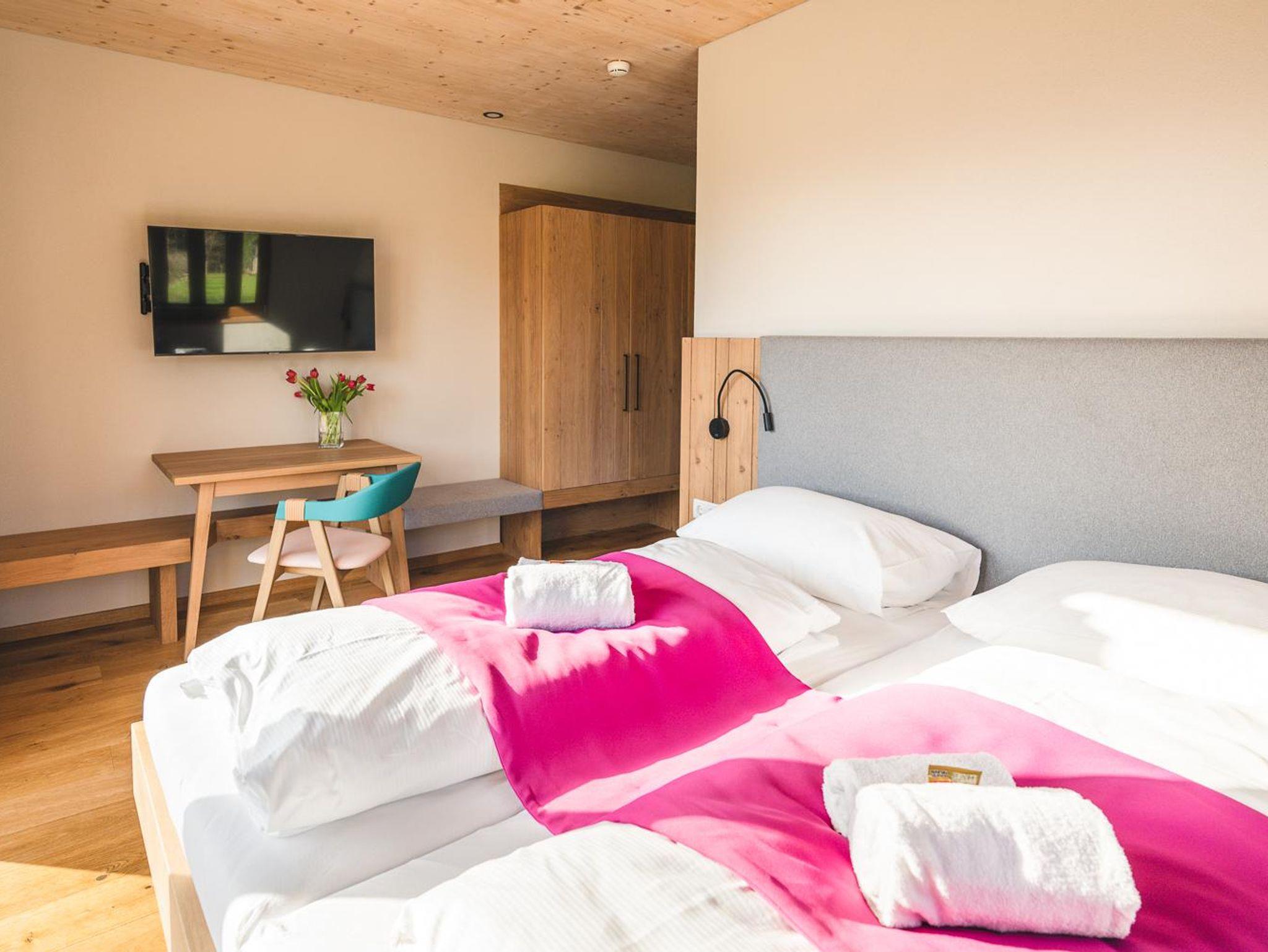 Dieses neue, komfortable Zimmer Bergblick ist eine Oase der Ruhe, in der Sie sich vom ersten Moment an wohlfühlen werden. Es wurde mit größter Sorgfalt und ausschließlich aus ausgewählten Naturmaterialien gestaltet, was sich in den edlen Holzböden und der hochwertigen Verarbeitung widerspiegelt.