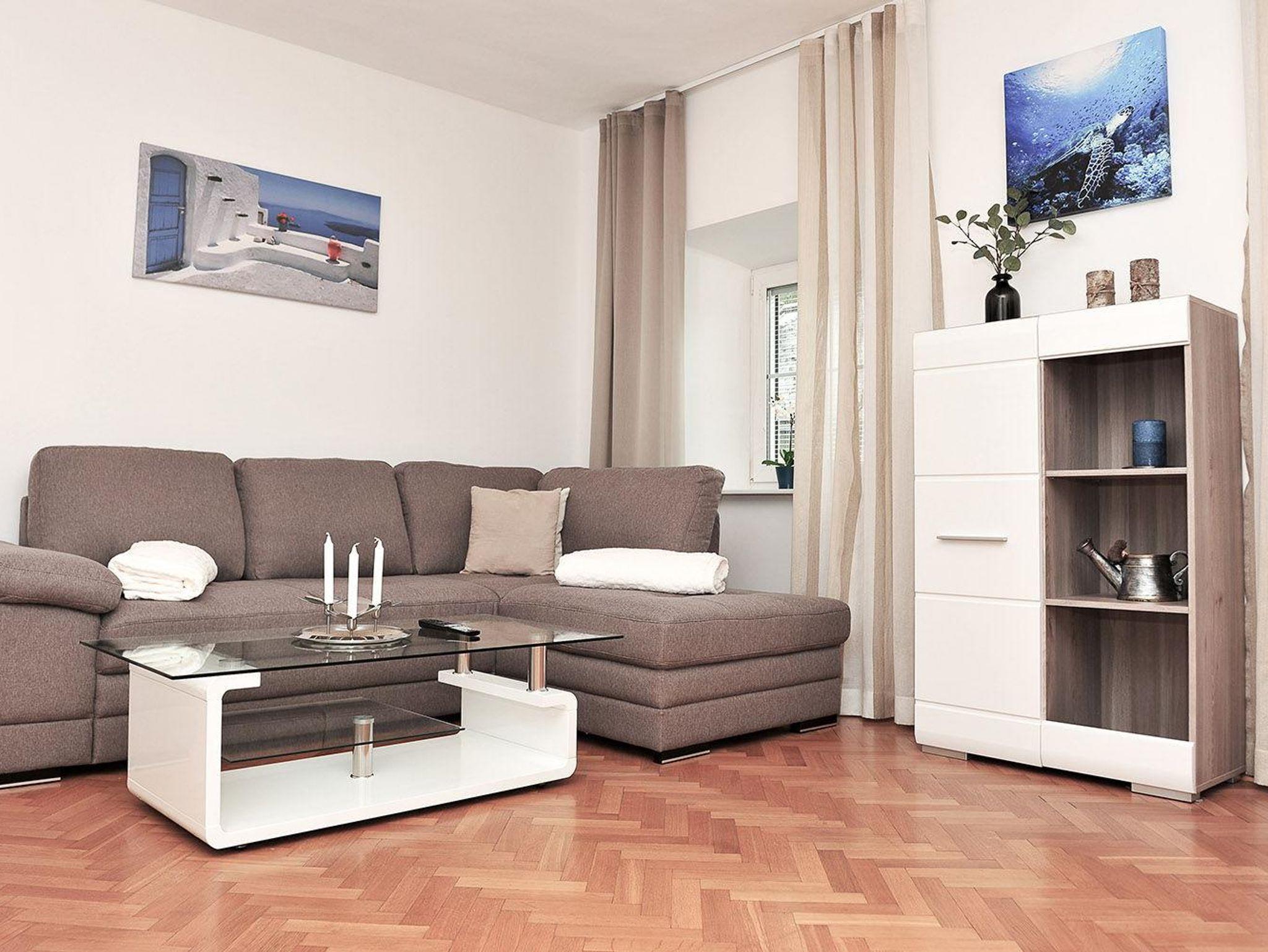 komfortabel, Wohnraum (erweiterbar auf zwei Schlafplätze), Schlafzimmer, Flachbildschirm, WLAN, Hitherm® Spiegel- und Wandheizung, Euroval®-Fußboden-Systemheizung, Dusche, WC, Haarfön, Zimmersafe, Rollos, Kaffeemaschine.